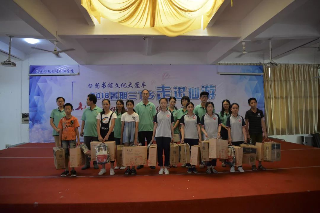 2018年暑期,圖書(shū)館依托 “文化大篷車(chē)”項(xiàng)目,組成教育關(guān)愛(ài)服務(wù)團(tuán)“三下鄉(xiāng)”服務(wù)隊(duì),帶著我院師生的愛(ài)心,將滿(mǎn)滿(mǎn)的暖意傳遞到仙游縣市民中。