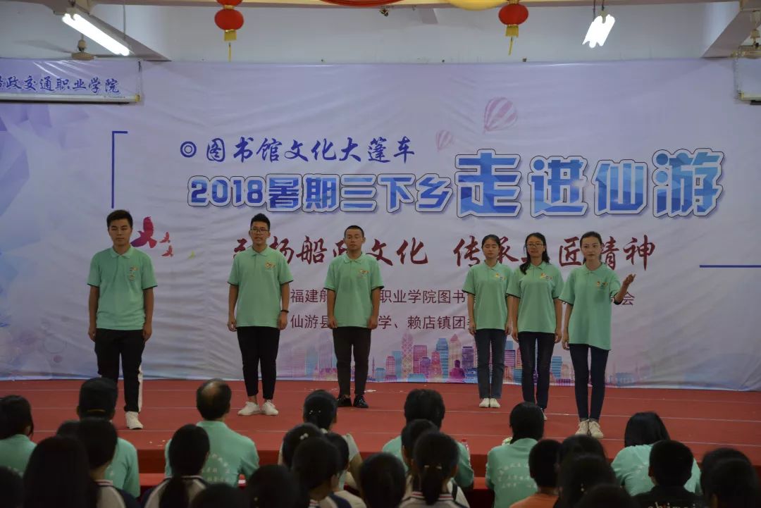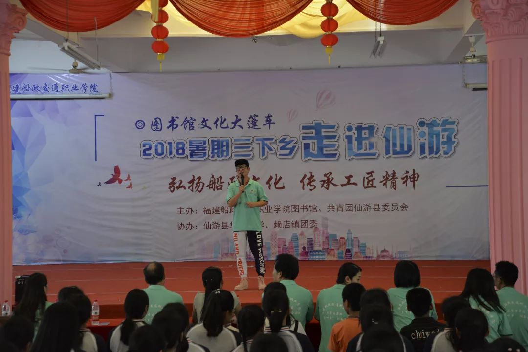 圖書(shū)館學(xué)生館員聯(lián)合會(huì)干部表演了音詩(shī)畫(huà)《湘江夜話》、詩(shī)誦讀《百年船政 再創(chuàng)輝煌》等節(jié)目,并通過(guò)移動(dòng)小型校史館展覽等,向參會(huì)的學(xué)生傳播船政的歷史和文化,倡導(dǎo)一絲不茍、精益求精的工匠精神。圖書(shū)館黨員干部與仙游華僑中學(xué)貧困留守兒童結(jié)對(duì)幫扶,并贈(zèng)送生活用品。