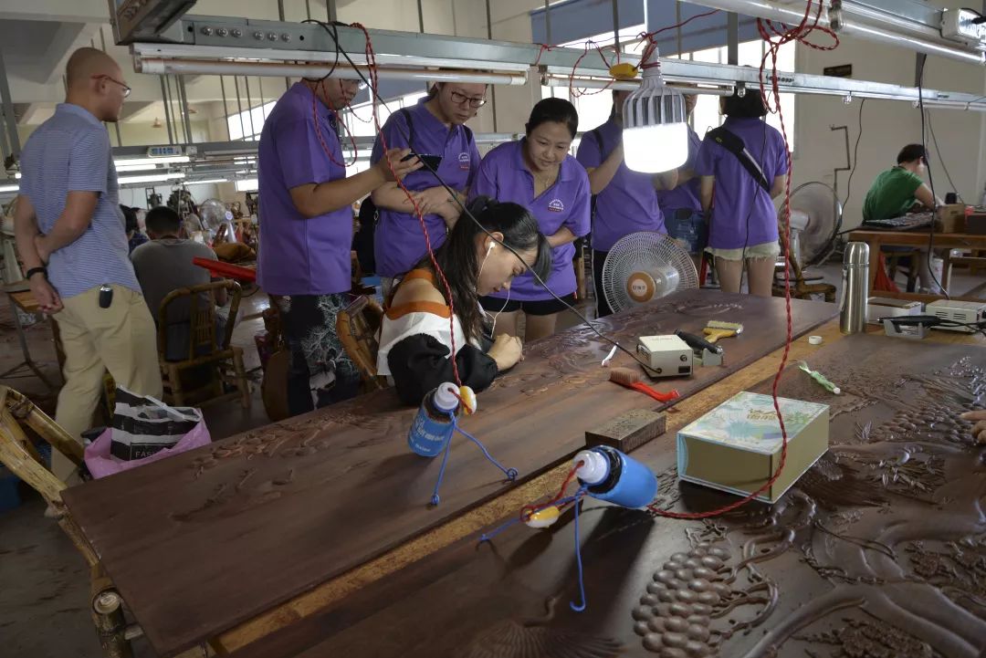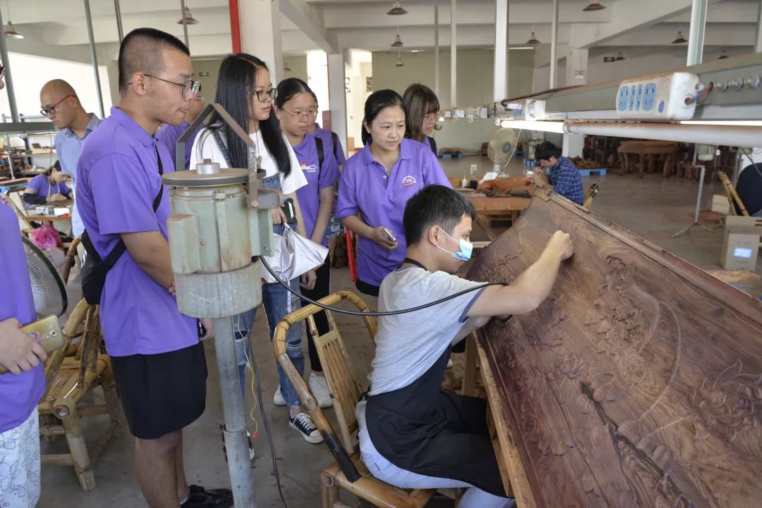 7月9日,服務(wù)團(tuán)走進(jìn)仙游縣皇冠古典家具有限公司,該公司主營(yíng)古典家具 , 木雕工藝品生產(chǎn)以及銷(xiāo)售。成員們參觀了該企業(yè)的展廳,了解各種木雕工藝品以及家具的情況,并且走進(jìn)了該公司的生產(chǎn)車(chē)間,開(kāi)展真人圖書(shū)分享,與生產(chǎn)車(chē)間木雕工匠面對(duì)面近距離接觸,與木雕工藝師傅交流傳承傳統(tǒng)技能心得。