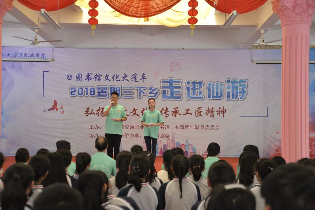 7月6日下午,福建船政交通職業(yè)學(xué)院圖書(shū)館“教育關(guān)愛(ài)服務(wù)團(tuán)”2018年暑期“三下鄉(xiāng)”實(shí)踐活動(dòng),在莆田仙游華僑中學(xué)正式拉開(kāi)了帷幕。華僑中學(xué)200余名學(xué)生,及當(dāng)?shù)亓羰貎和煌瑓⒓印?/p>