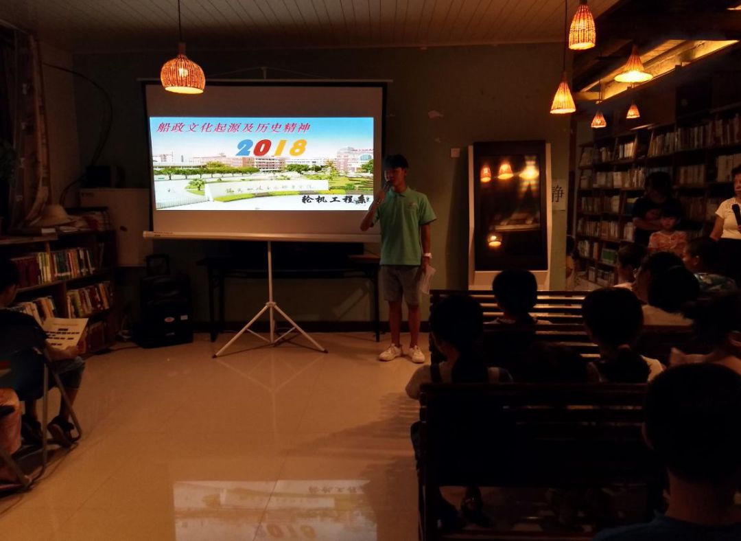 上午的走訪結(jié)束,簡(jiǎn)單的午憩之后,下午我們便展開(kāi)了以弘揚(yáng)“船政精神”為主題的專(zhuān)題活動(dòng);在嚴(yán)老師的幫助下,召集了古鎮(zhèn)當(dāng)?shù)氐木用?,開(kāi)展一堂別具特色的主題講座。