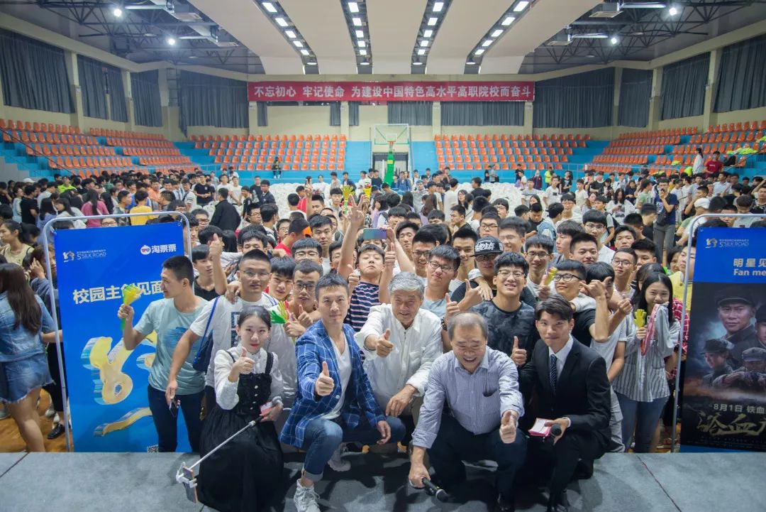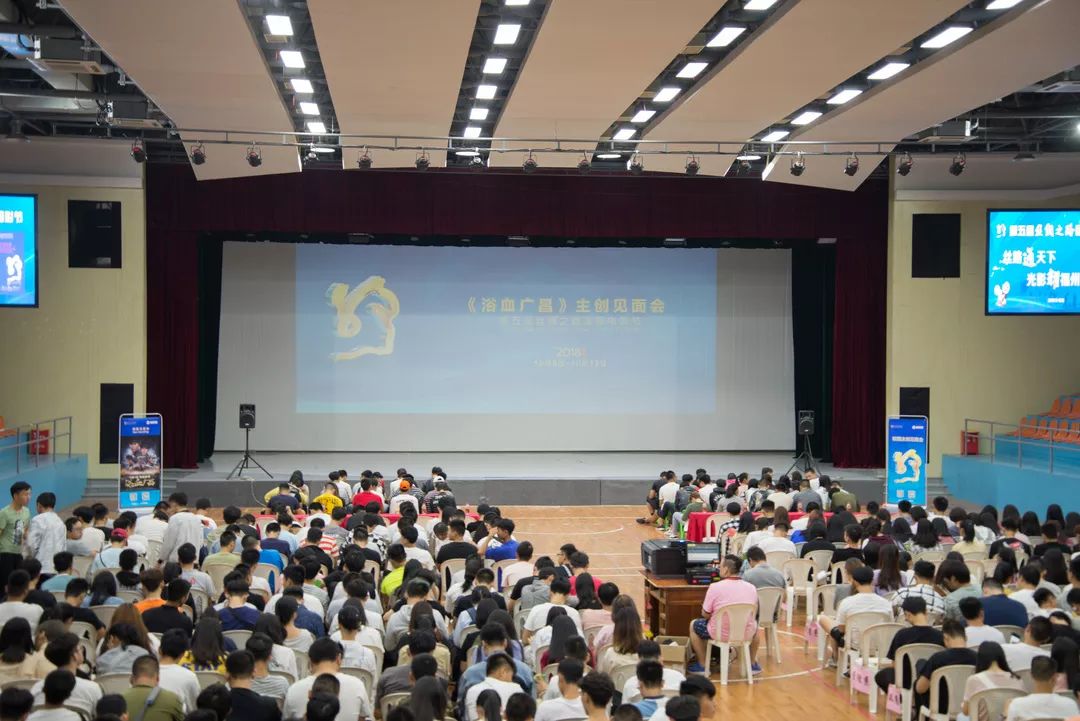 《浴血廣昌》導(dǎo)演高峰、編劇劉英學(xué)與演員張永達(dá)來到了現(xiàn)場,與我院影迷交流互動。現(xiàn)場熱鬧非凡,校團(tuán)委綜合科科長夏樑波老師、校團(tuán)委干事吳素湲老師等約450多名師生共同觀看了演出。