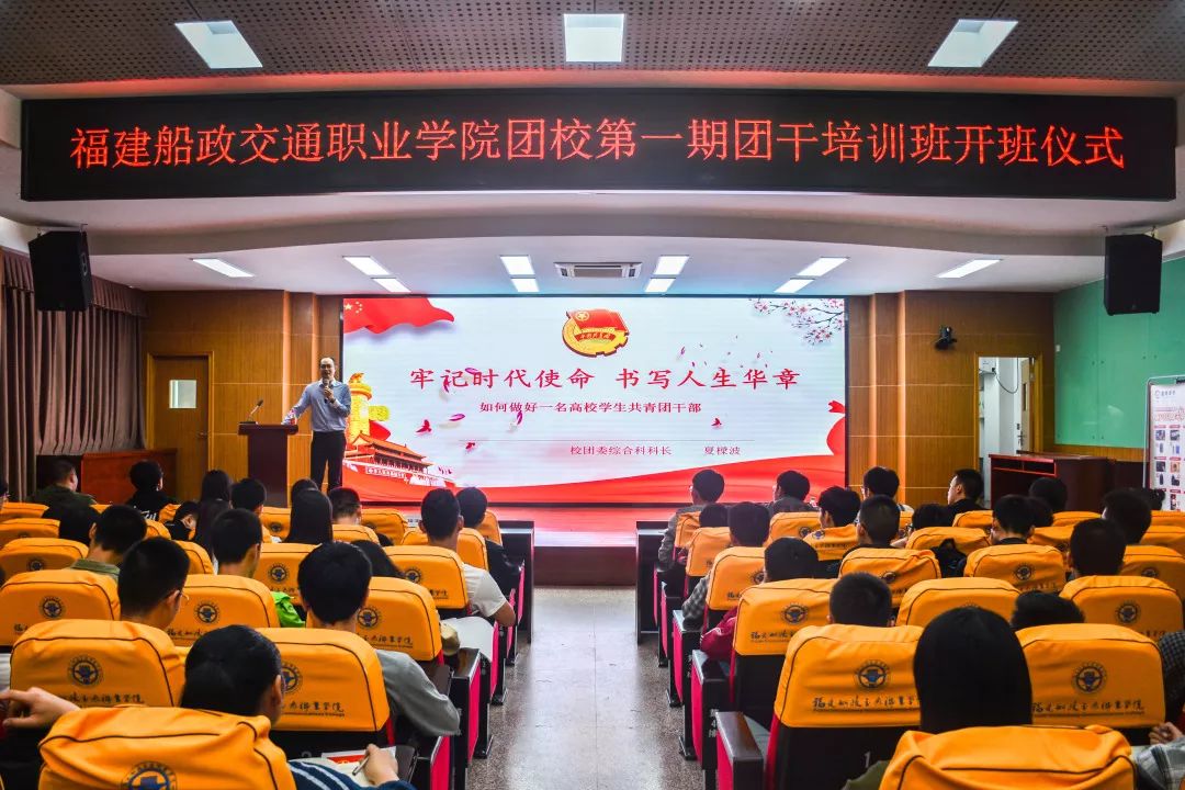 10月20日下午,福建船政交通職業(yè)學(xué)院團(tuán)校2018年第一期團(tuán)干培訓(xùn)班在1號(hào)樓6樓學(xué)術(shù)報(bào)告廳舉行開(kāi)班儀式。校團(tuán)委陳慧副書記、校團(tuán)委綜合科科長(zhǎng)夏樑波老師以及培訓(xùn)班的全體學(xué)員(來(lái)自學(xué)院2018級(jí)各團(tuán)支部的團(tuán)支部書記、團(tuán)支部副書記、組織委員以及2017級(jí)校系兩級(jí)部分學(xué)生干部)共375人參加本次開(kāi)班儀式。開(kāi)班儀式由校團(tuán)委學(xué)生第一副書記龔鎮(zhèn)同學(xué)主持。
