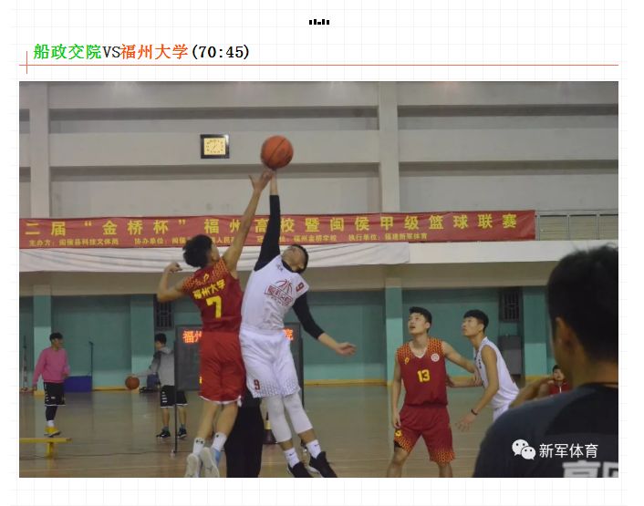 由閩侯縣科技文體局主辦,閩侯縣上街鎮(zhèn)政府協(xié)辦,上街鎮(zhèn)文化服務(wù)中心承辦的第二屆“金橋杯”福州高校暨閩侯甲級(jí)籃球聯(lián)賽落下帷幕,船政男籃勇奪公開(kāi)組冠軍。