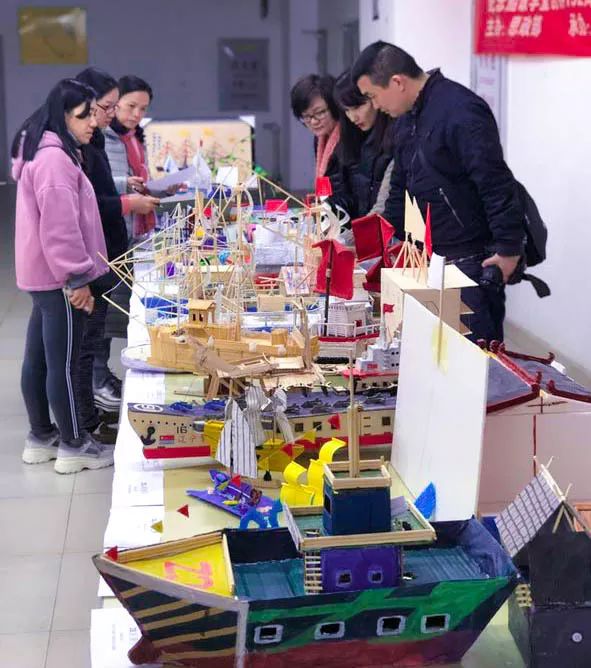 現(xiàn)場展示了來自10個系部的47件參賽作品,吸引了眾多同學(xué)駐足欣賞。評委老師對參賽作品進行認(rèn)真評選。最終,來自航海技術(shù)工程系李泳波和沈燕鴻同學(xué)的作品——“一部船政史,半部中國近代史”憑借精湛的工藝、貼切活動的主題和完美的視覺效果斬獲一等獎。
