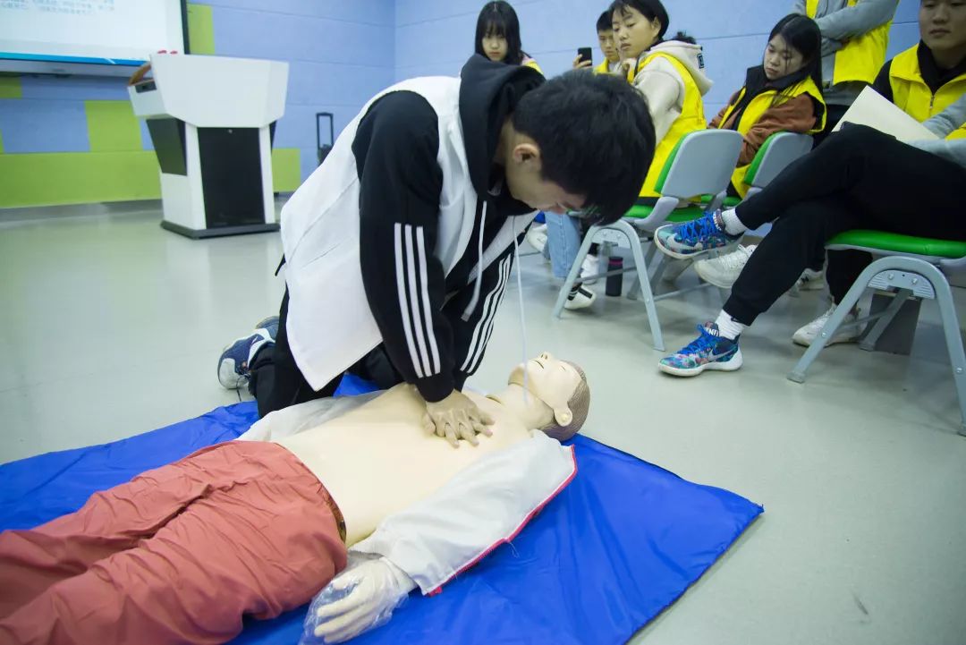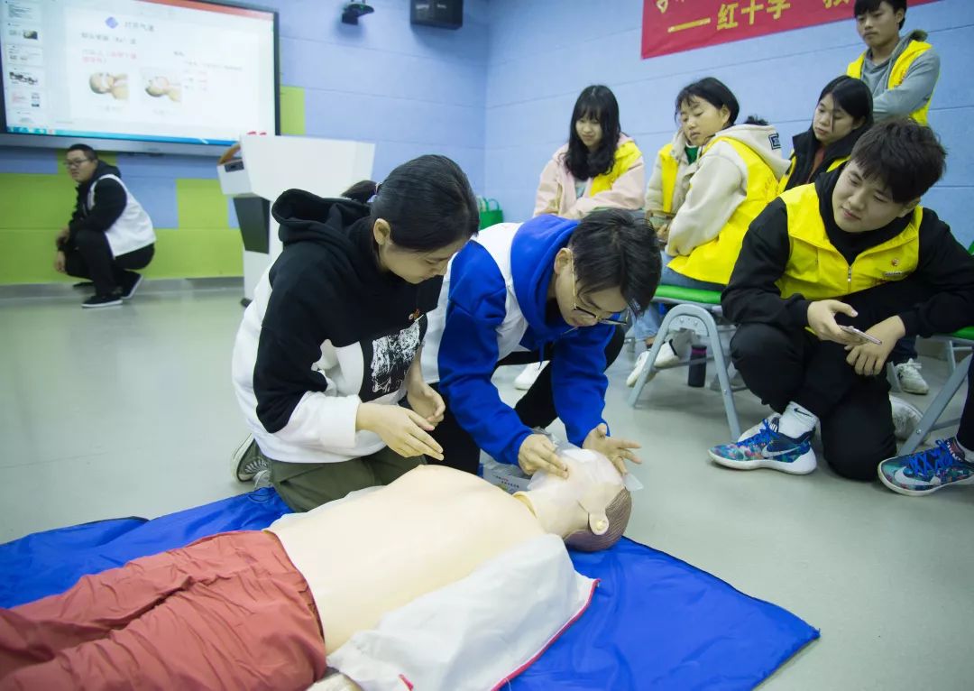 具體培訓(xùn)內(nèi)容包括:現(xiàn)代救護(hù)新概念、心跳呼吸驟停的現(xiàn)場急救理論及基本技能實操訓(xùn)練、除顫儀(AED)的使用、氣道異物梗塞的判斷、創(chuàng)傷救護(hù)的基本理論及技能實操訓(xùn)練,以及常見急癥、意外傷害和火災(zāi)、地震、踩踏等事故現(xiàn)場的基本自救互救知識與技能。
