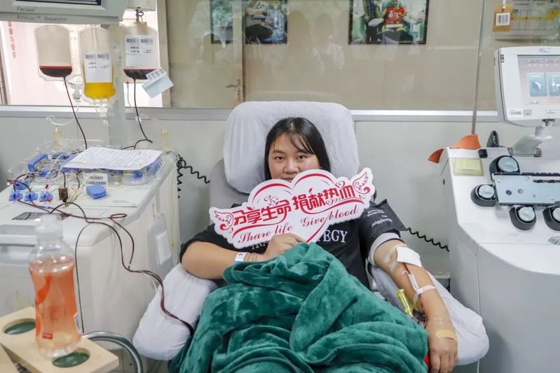 在捐獻大廳也有我們紅十字會可愛的小小捐獻者,詢問得知她已經(jīng)捐獻了四次機采血小板,非常有無私奉獻精神~