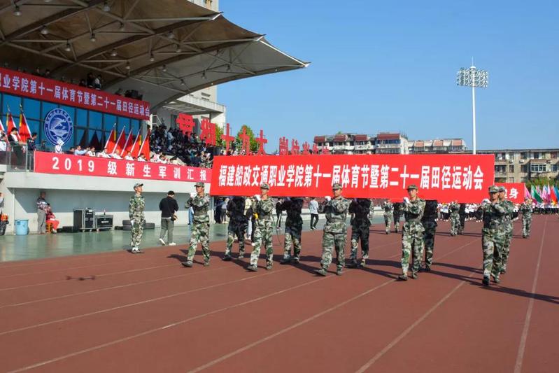 11月6日上午8時,福建船政交通職業(yè)學院2019級新生軍訓總結(jié)匯報暨第二十一屆校園運動會開幕式在校田徑場隆重舉行。