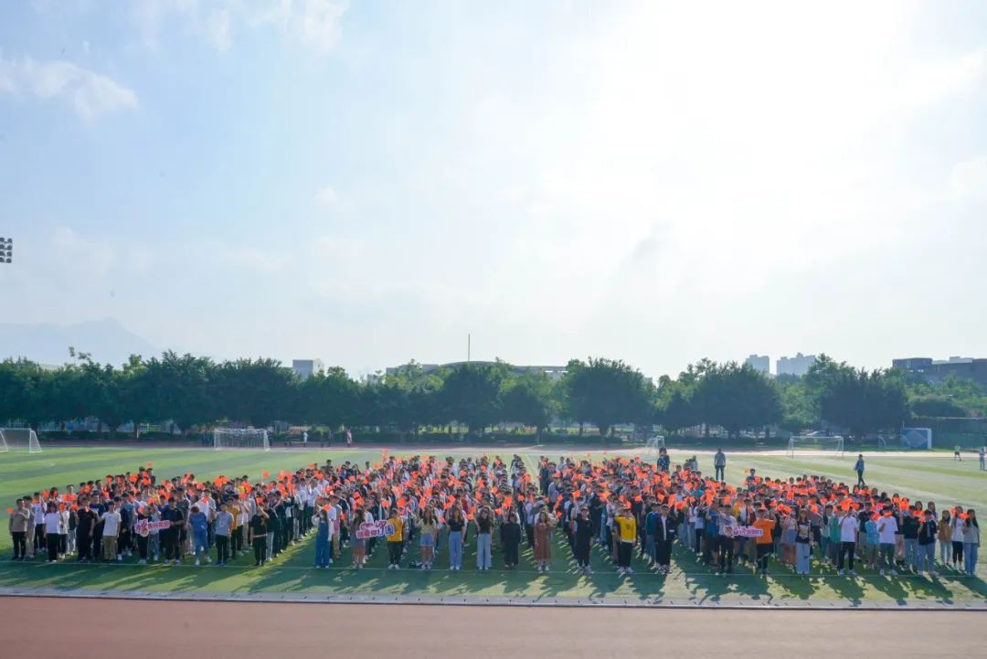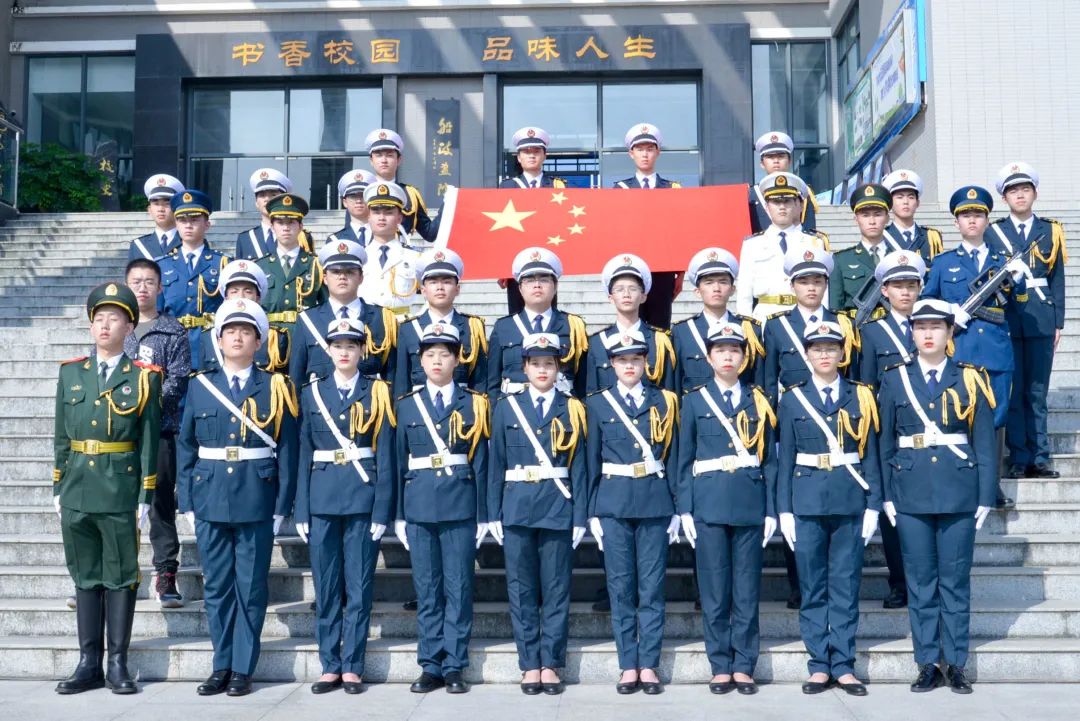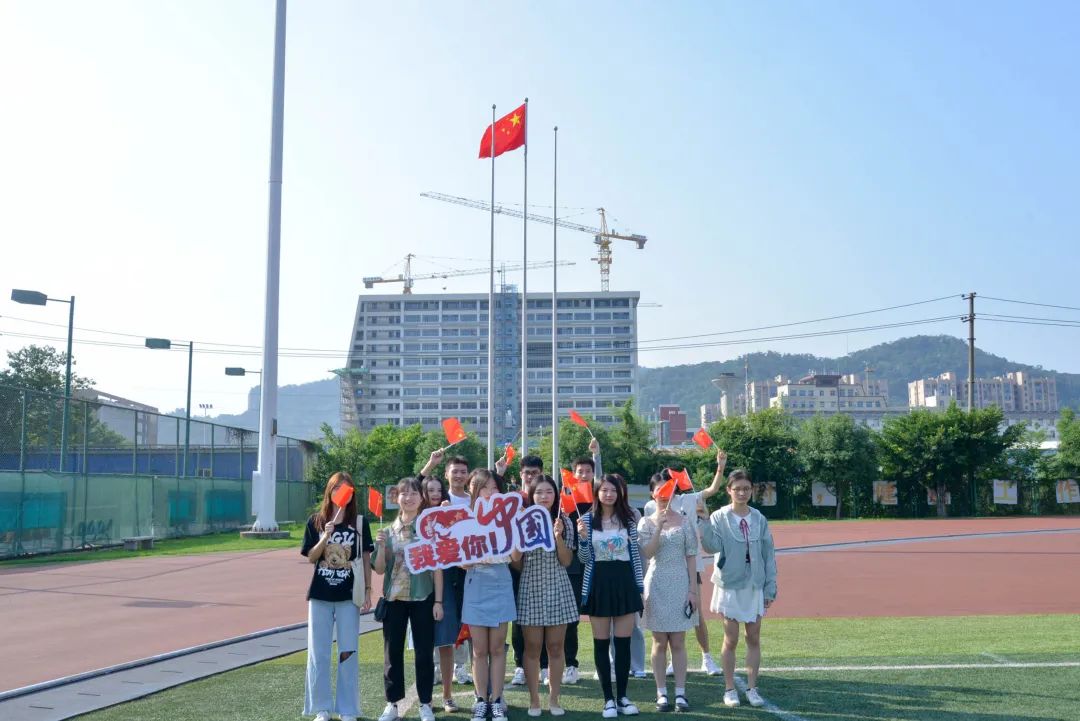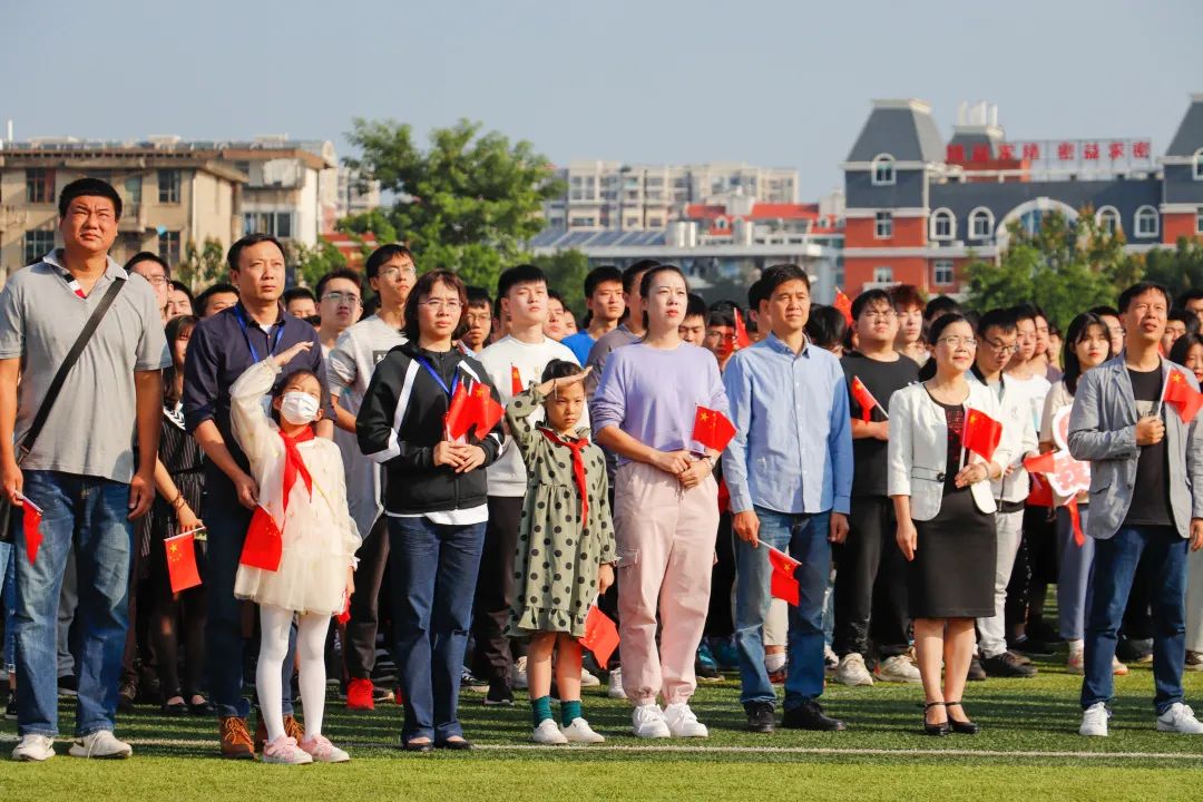 在雄壯的國歌聲中,鮮艷的五星紅旗冉冉升起,迎風(fēng)飄揚。全體師生深懷對祖國的無限熱愛和崇高敬意,面向國旗行注目禮。