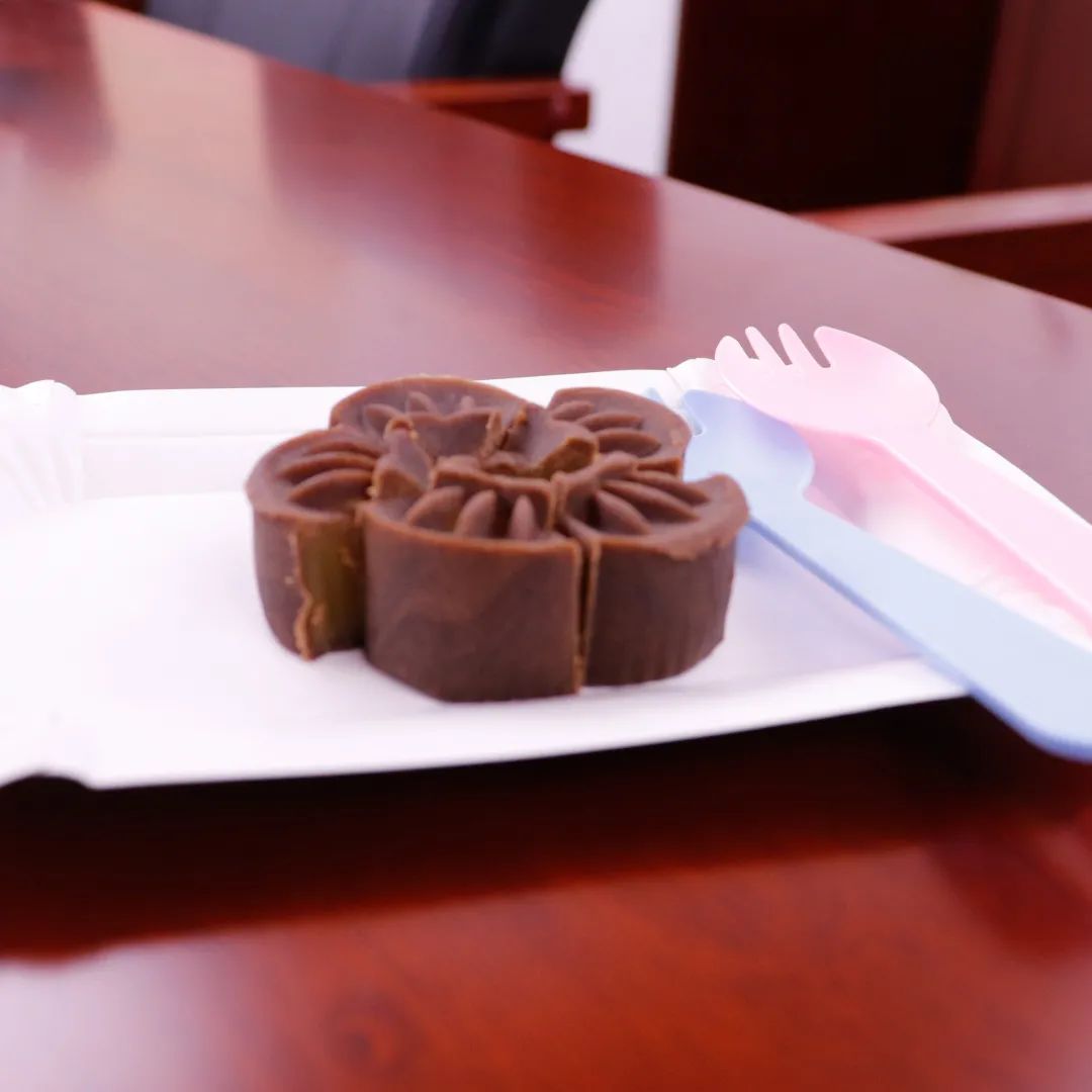 會后,師生們一起切蛋糕,吃月餅,開心共度佳節(jié)。