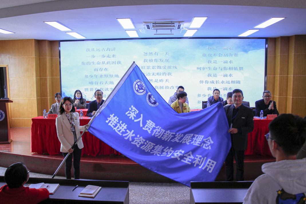 啟動儀式上,由青年團(tuán)員代表陳林琳同學(xué)宣讀了《節(jié)水倡議書》,全體同學(xué)起立齊唱歌曲《我是一滴水》。同時,福建船政交通職業(yè)學(xué)院副院長高汝武為安全與環(huán)境學(xué)院舉行了授旗儀式,通過莊嚴(yán)的儀式,向大家鄭重宣告此次活動的意義,倡導(dǎo)踐行綠色環(huán)保精神,切實推進(jìn)水資源集約安全利用。