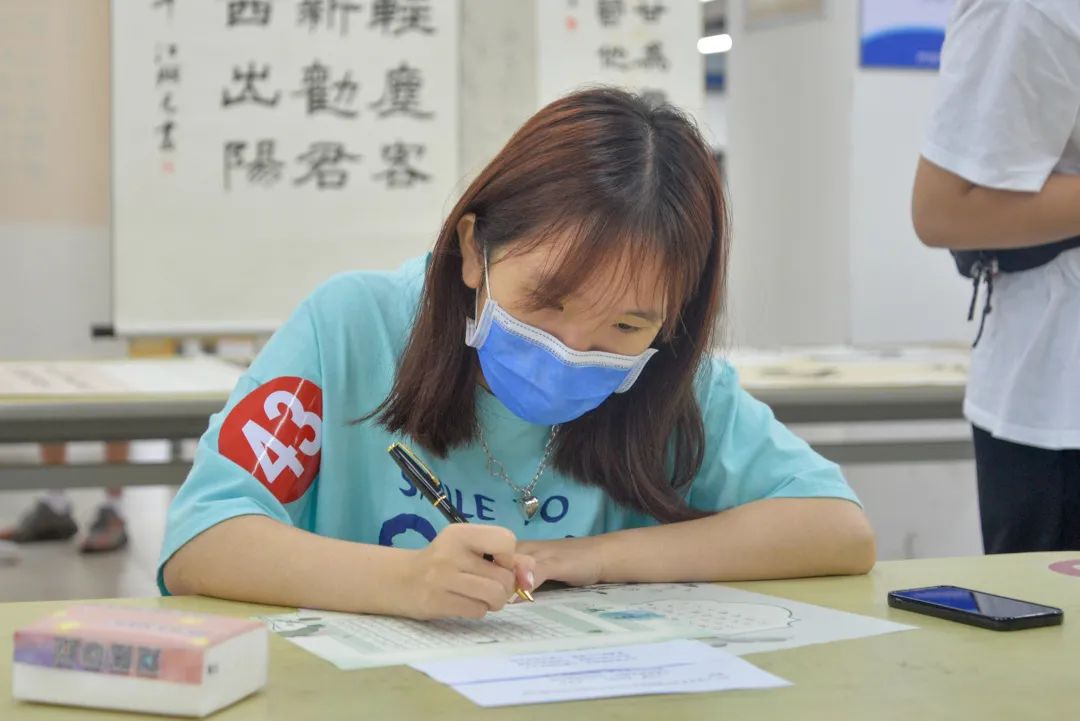 比賽現(xiàn)場,選手們個個聚精會神,將身心融于筆端,他們的作品各具特色,或端莊娟秀,或筆力遒勁,或?yàn)⒚摿鲿场恳晃贿x手都全力以赴,將自己對書法的理解與熱愛揮灑在那一張薄紙上。