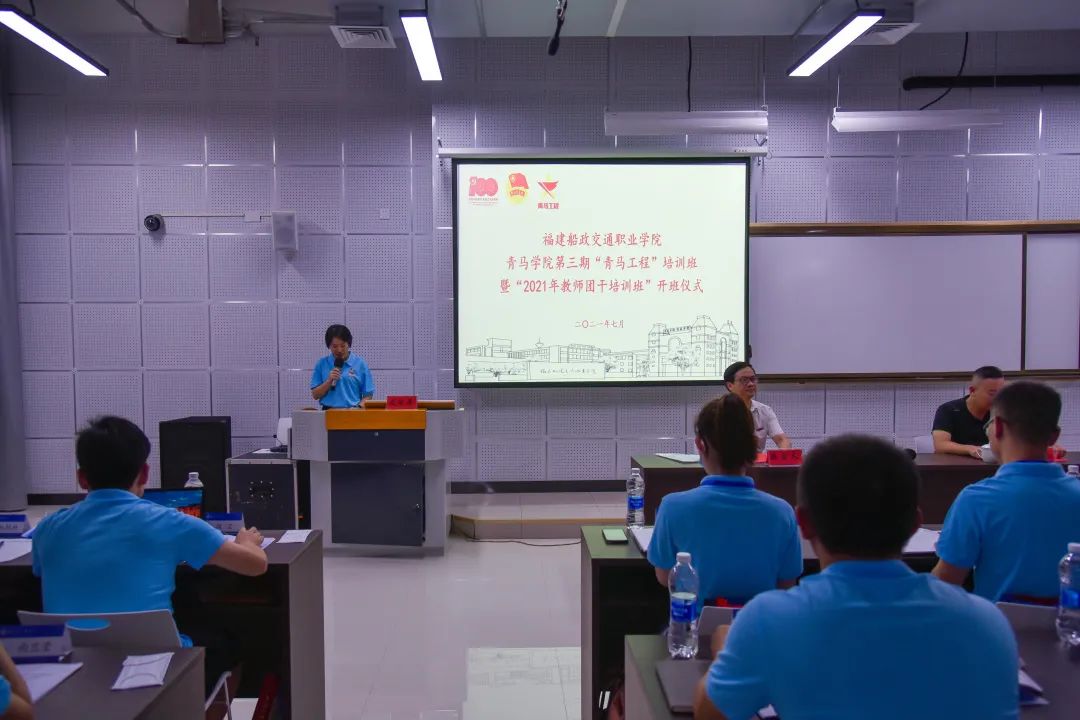 2021年7月8日下午,福建船政交通職業(yè)學院青馬學院第三期“青馬工程”培訓班暨“2021年教師團干培訓班”開班儀式在武夷新區(qū)職教園舉行。學院黨委副書記陳宜大、武夷職教園副主任林峰民及青馬學院第三期“教師團干培訓班”全體學員參加了會議,會議由學院團委副書記梁晶主持。