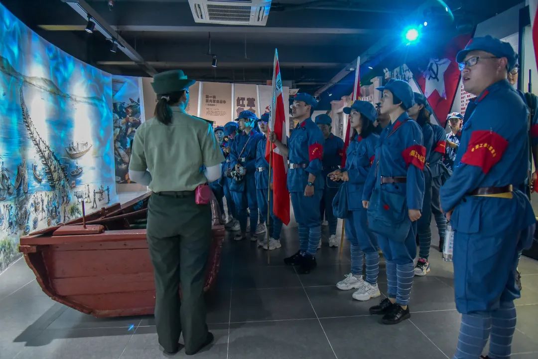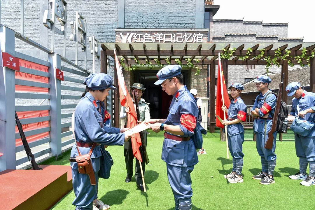 1933年8月25日,中國工農(nóng)紅軍東方軍第四師第十、十一、十二等三個團從潛口和沙墩南渡富屯溪進駐洋口。28日下午,召開會議通過“革命委員會”臨時綱要,選舉產(chǎn)生革命委員會主席戴子科、副主席陳子明,并成立了洋口蘇維埃政府。一幕幕熱血的往事恍如昨日,學院團委副書記梁晶帶領培訓班成員,緊隨先烈的足跡,在黨旗下莊嚴宣誓,“不忘初心、牢記使命”!