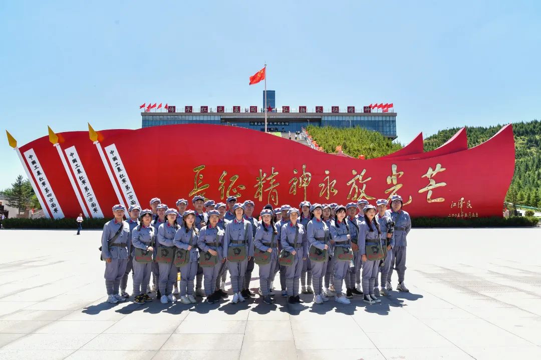 “六盤山,十八旋,上山二十五,下山三十一?!钡巧狭P山頂,我們深刻體會(huì)到了這首民謠里道出六盤山的巍峨與險(xiǎn)峻。舉目南望,視野開闊,六盤山雄姿一覽無遺,“六盤山紅軍長(zhǎng)征紀(jì)念碑”10個(gè)鎏金大字與毛澤東吟詩臺(tái)上的紅旗遙相呼應(yīng),在紀(jì)念石碑前我們齊聲高唱“沒有共產(chǎn)黨就沒有新中國”,在鮮紅的黨旗下,我們重溫入黨誓詞,歌聲嘹亮,誓言堅(jiān)定,一幕幕革命場(chǎng)景在腦海里再次重映,這一刻我們心底在吶喊著“強(qiáng)國有我,請(qǐng)黨放心”!