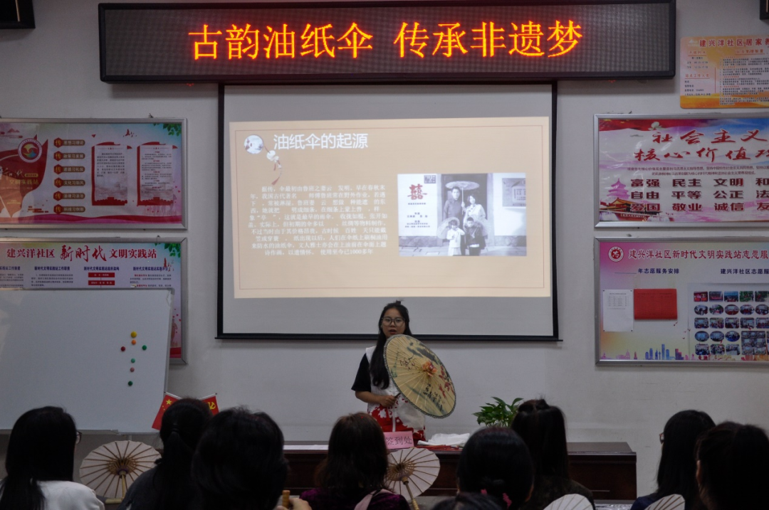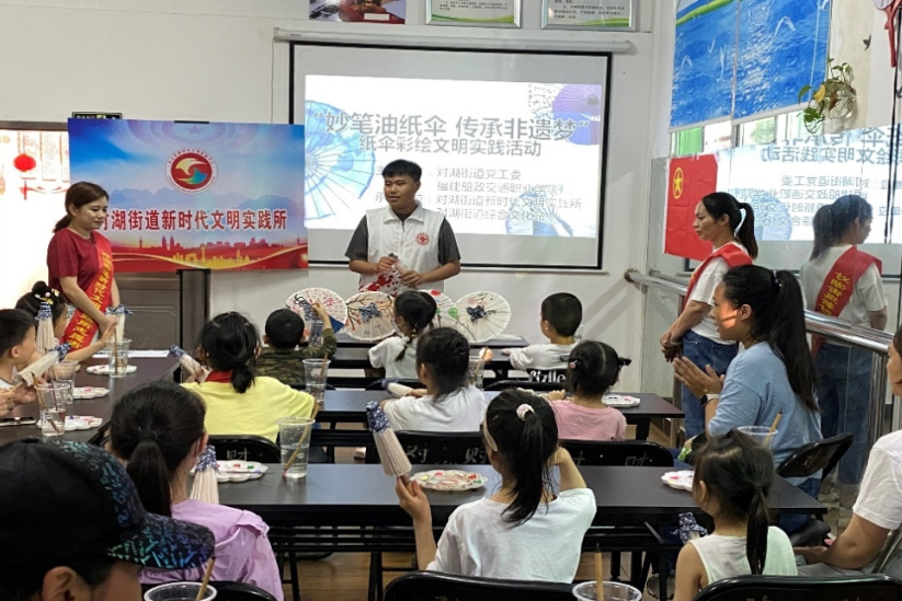 在對湖街道,社團(tuán)成員們向居民們介紹了有關(guān)福州油紙傘的歷史、文化背景和工藝等方面的知識,并介紹了非遺油紙傘技藝傳承現(xiàn)存的情況。讓更多的人認(rèn)識非遺油紙傘,熱愛非遺油紙傘。