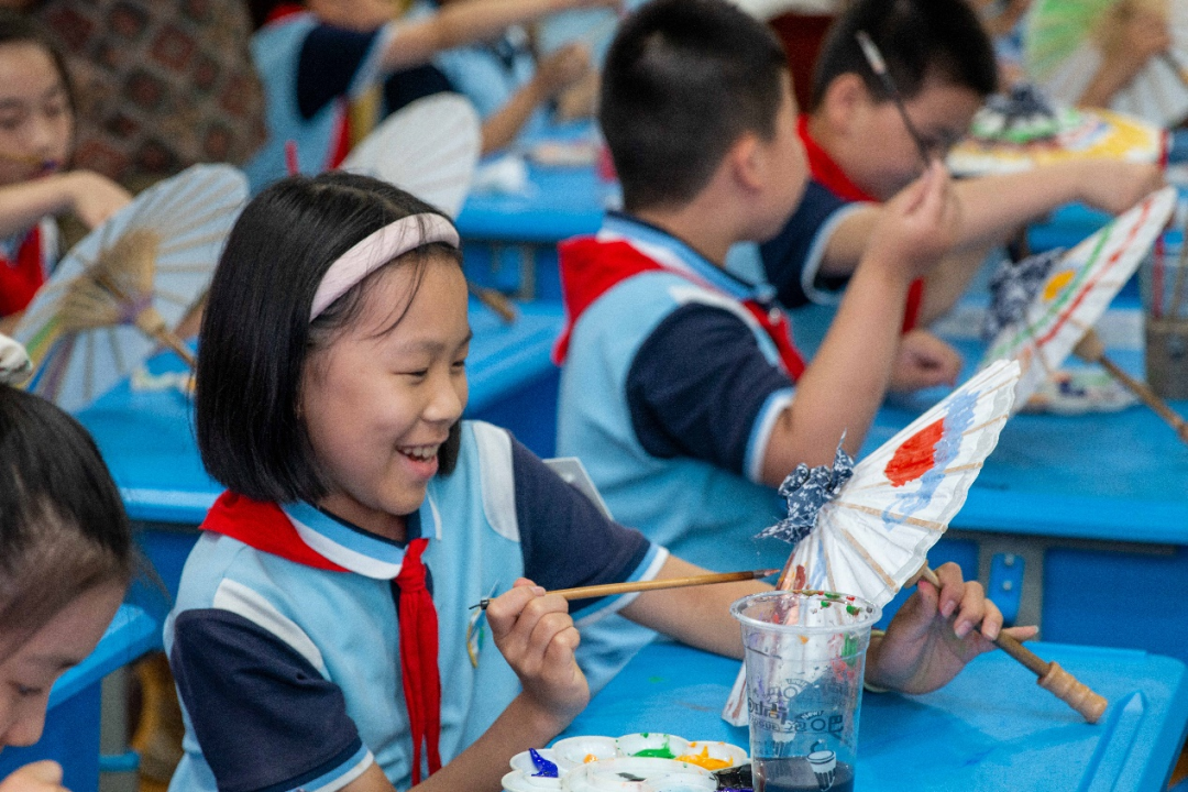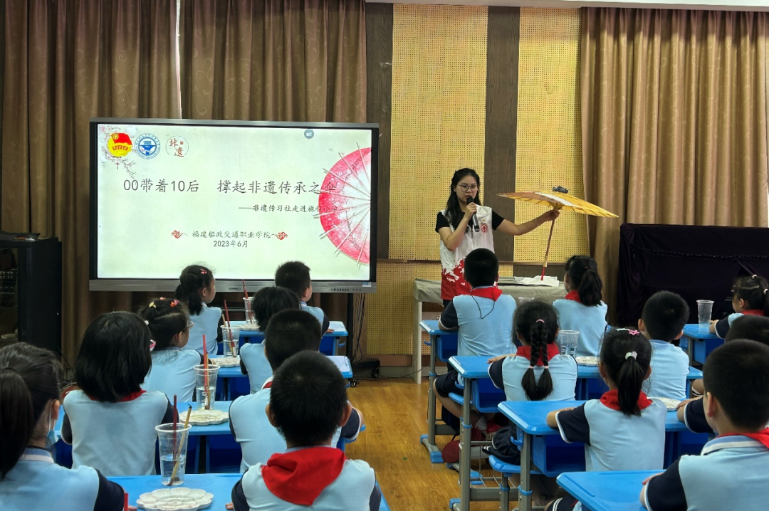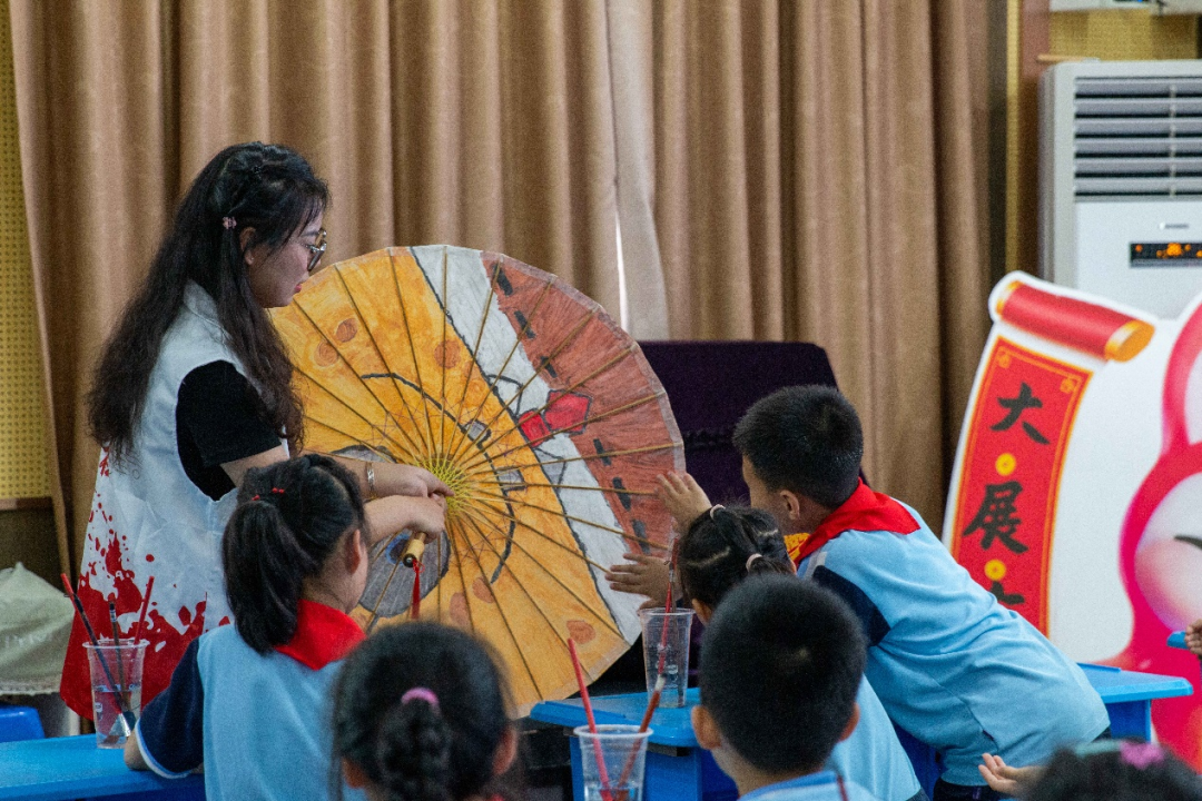 在施程小學(xué),社團(tuán)成員們將油紙傘帶進(jìn)了課堂,讓孩子們從小接觸這一傳統(tǒng)技藝,讓他們對油紙傘產(chǎn)生興趣,從而在他們心中播下傳承非遺文化的種子。