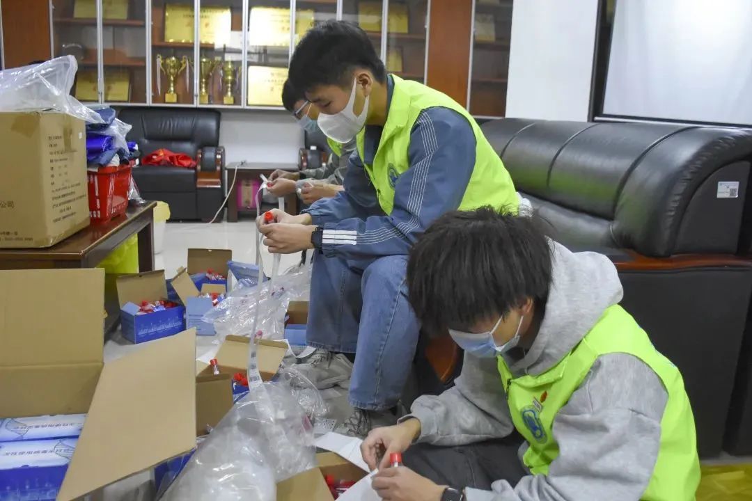 志愿者們?yōu)閷W(xué)校防疫工作中