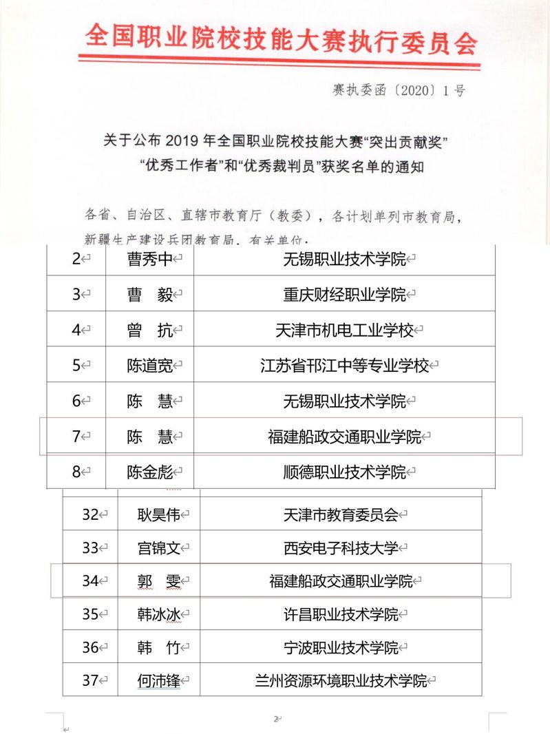 2019年全國職業(yè)院校技能大賽優(yōu)秀工作者