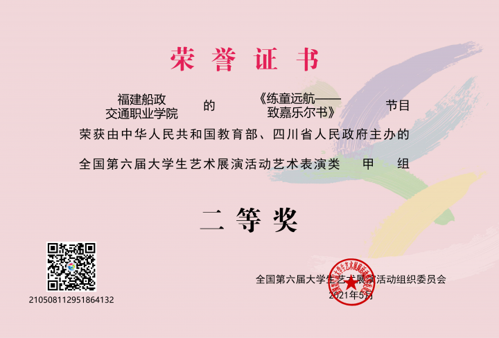 《練童遠航——致嘉樂爾書》全國第六屆大學生藝術展演活動藝術表演類甲組二等獎