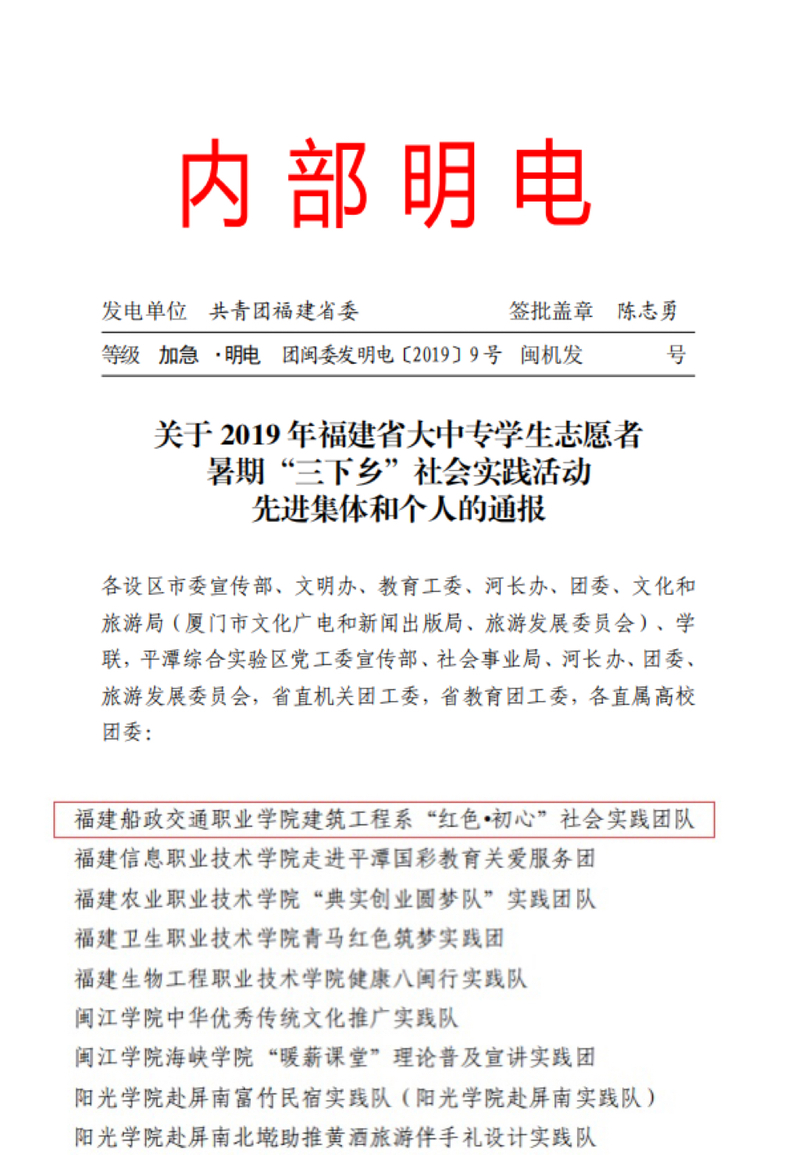 2019年福建省大中專學生志愿者暑期“三下鄉(xiāng)”社會實踐活動優(yōu)秀團隊