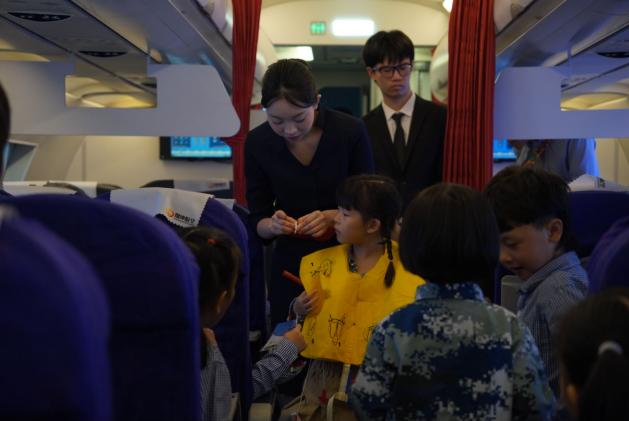周末節(jié)假日航空學院與校團委合作,服務周邊中小學校,帶領小學生參與航空職業(yè)啟蒙活動,云朵導游社的同學們擔當志愿者,在客艙一線為學生們提供服務。