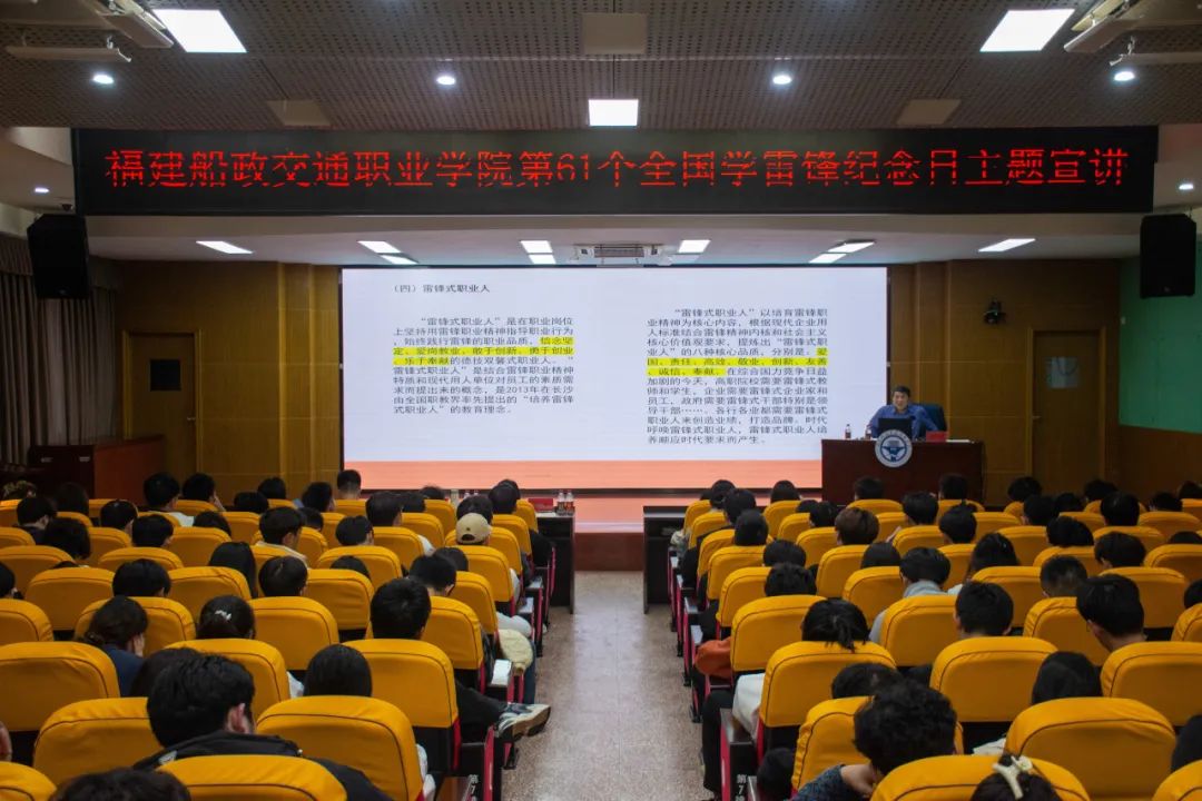 2024年3月5日是第61個全國學(xué)雷鋒紀(jì)念日,為深入貫徹習(xí)近平總書記對深入開展學(xué)雷鋒活動的重要指示精神,福建船政交通職業(yè)學(xué)院團委于3月5日晚19:00,邀請校原黨委書記江定濤在福道園行政樓六樓學(xué)術(shù)報告廳開展雷鋒精神主題講座。校、院兩級學(xué)生會全體工作人員、青年師生代表、青年志愿者代表等320人參加了講座。講座由校團委副書記梁晶主持。