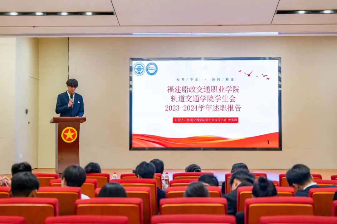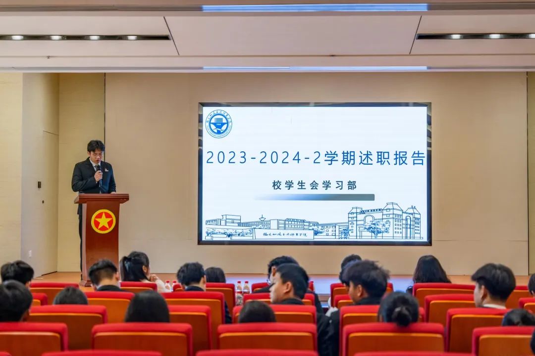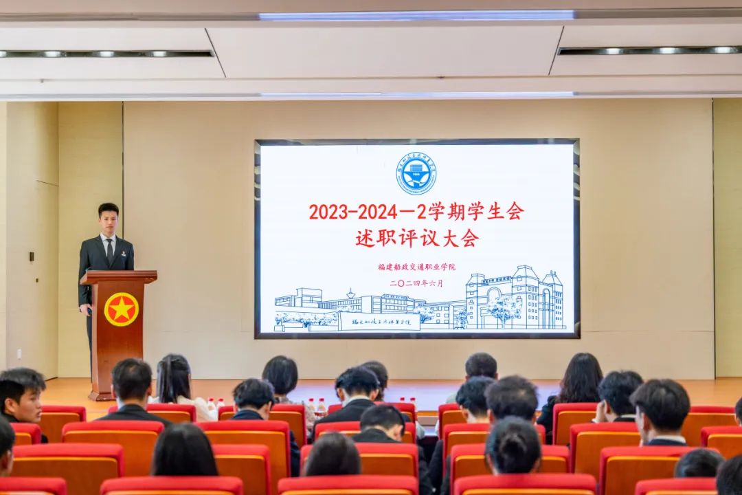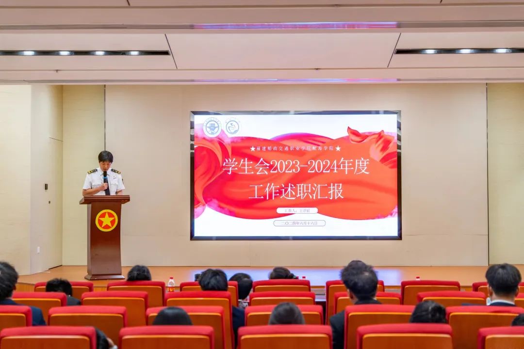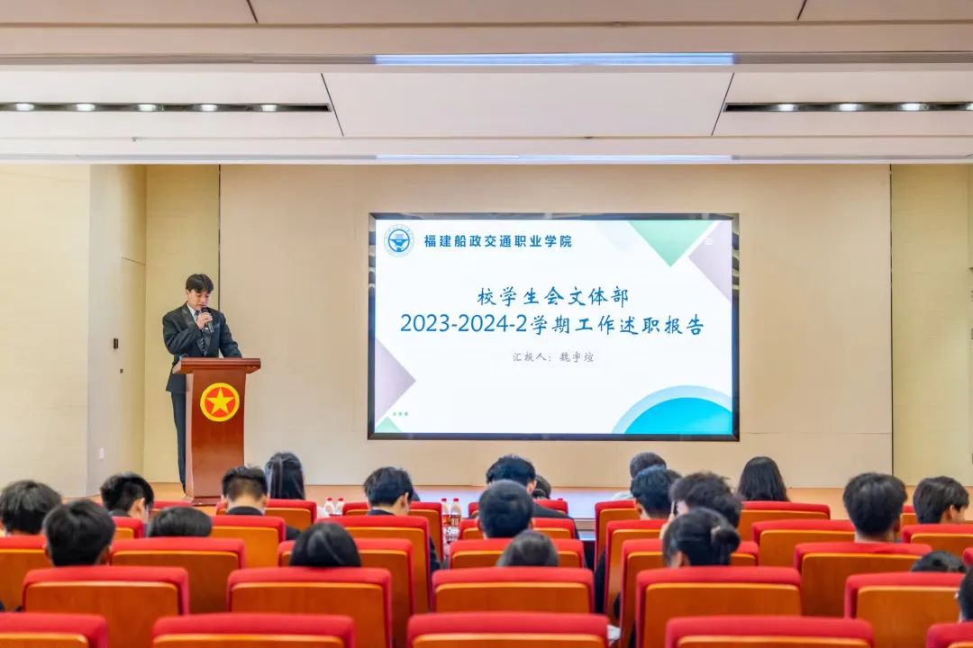為加強(qiáng)我校學(xué)生會(huì)組織建設(shè),全面深化學(xué)生會(huì)組織改革,不斷完善考核制度,強(qiáng)化學(xué)生服務(wù)體系,6月16日下午福建船政交通職業(yè)學(xué)院2023-2024-2學(xué)期學(xué)生會(huì)述職評(píng)議大會(huì)在福船園藝新樓304報(bào)告廳舉行 。校團(tuán)委書記陳慧、副書記梁晶、校黨委學(xué)生工作部思政科科長張瑞青出席會(huì)議,會(huì)議由第八屆校學(xué)生會(huì)執(zhí)行主席潘懿晟同學(xué)主持。