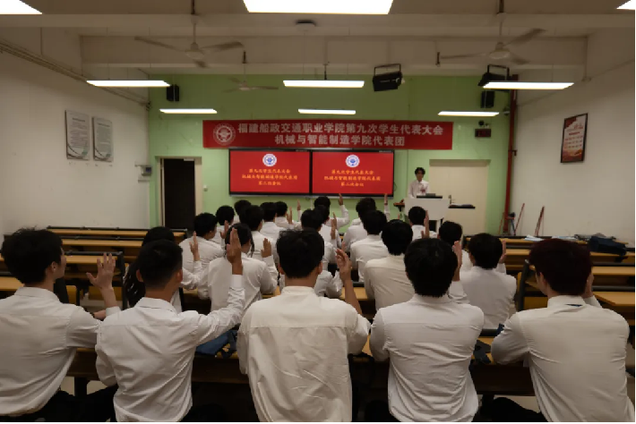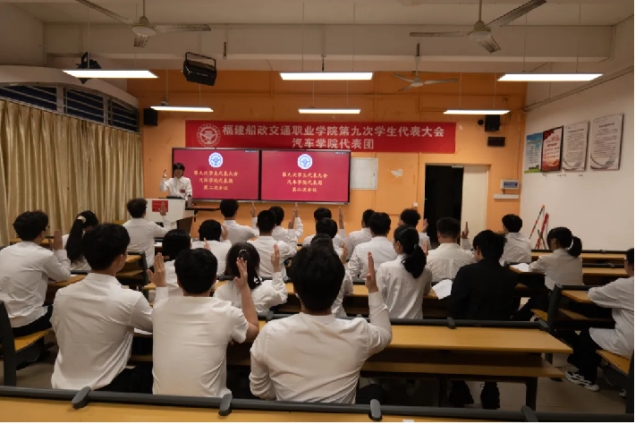 6月22日上午,福建船政交通職業(yè)學院第九次學生代表大會開幕式在福道園行政樓六樓學術報告廳舉行。校黨委委員、副校長陳艷紅出席大會開幕式并講話,福建省學聯(lián)駐會執(zhí)行主席林潤杰同學到會致辭,校黨委組織部、宣傳統(tǒng)戰(zhàn)部、學生工作部、團委,教務處、安全保衛(wèi)處等相關職能部門,各二級學院分團委負責人,第九次學生代表大會代表參加開幕式。