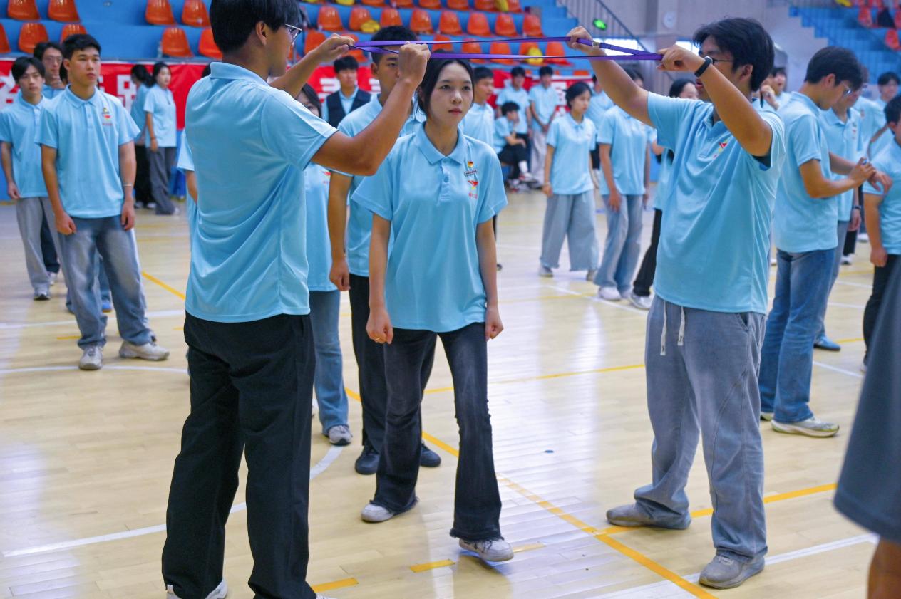 素質拓展訓練在活力滿滿的氛圍中拉開序幕?!捌票鶈⒑健笨焖倌蹖W員,“一錘定音”“移舟過河”“團球競速”等項目,在趣味與挑戰(zhàn)中錘煉青馬學員的決策力、協(xié)作力,快速升溫團隊凝聚力;“急速60秒”“卓越圈”“鼓動人心”及團隊飛盤依次開展,激發(fā)了青馬學員的思維活力、彰顯了團結力量、傳遞了責任擔當,學員們在互動中釋放青春動能,深化了團隊情誼。