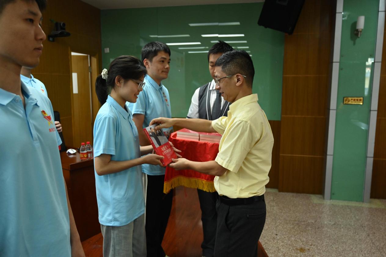 7月24日下午,學習班邀請了共青團福建省委學校部部長、省學聯(lián)秘書長黃承祖老師為學員們傳達全國學聯(lián)二十八大會議精神。會前,他向京津冀滬+交通職業(yè)教育集團聯(lián)盟校,閩疆合作共同體、閩寧合作共同體院校,以及福建省職業(yè)院校質量振興共同體、鄉(xiāng)村振興共同體成員單位,以及我院第九期青馬學員代表,現(xiàn)場贈閱圖書——《習近平與大學生朋友們》(第二卷)。他希望大家通過讀書,感受習近平總書記念茲在茲的青年情;更希望青馬學員們通過閱讀,展示我們新時代青年該有的樣子。