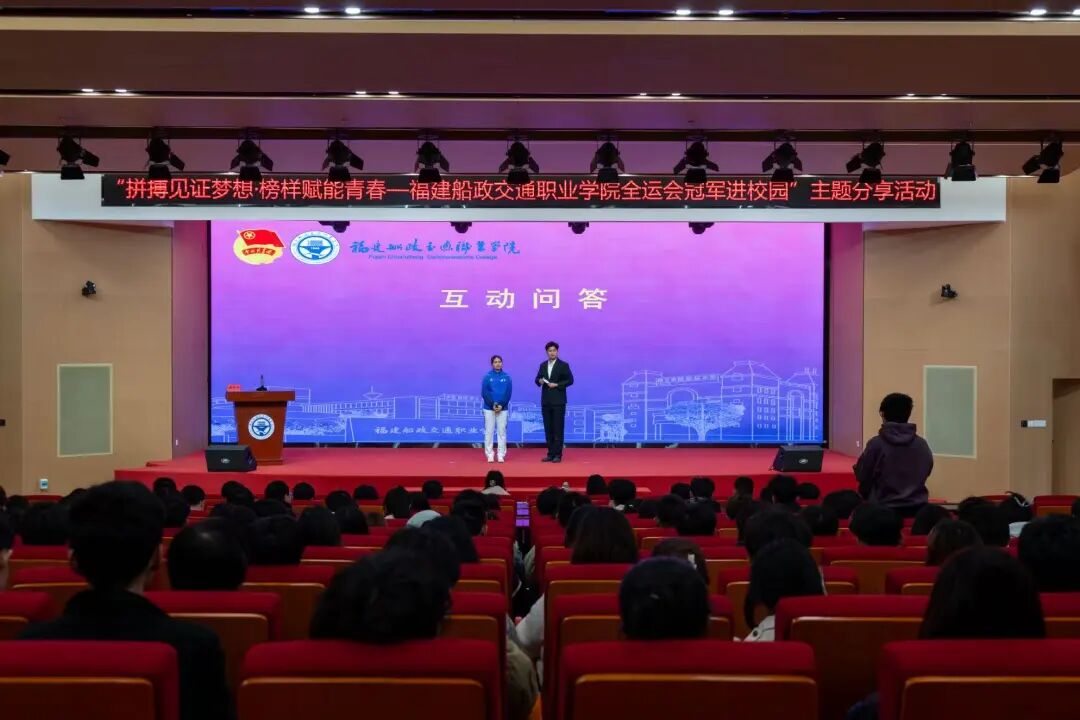 活動(dòng)在同學(xué)們熱烈的掌聲中拉開帷幕。黃芊芊以“拼搏見證夢(mèng)想”為主題,娓娓道來自己從晉江少體校起步,歷經(jīng)市隊(duì)、省隊(duì),直至入選國(guó)家隊(duì)的成長(zhǎng)軌跡。面對(duì)傷病與低谷,她坦言“再堅(jiān)持一下”的信念是關(guān)鍵;談及天賦、努力與機(jī)遇,她真誠(chéng)分享:“天賦是起點(diǎn),努力是過程,而機(jī)遇,永遠(yuǎn)青睞有準(zhǔn)備的人。”樸實(shí)話語中蘊(yùn)含的力量,深深觸動(dòng)了在場(chǎng)每一位船政學(xué)子。
