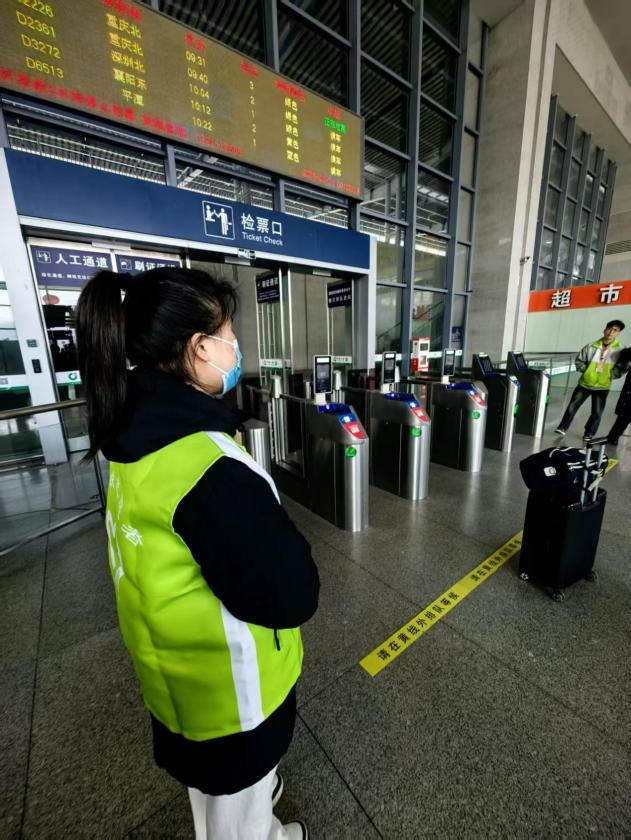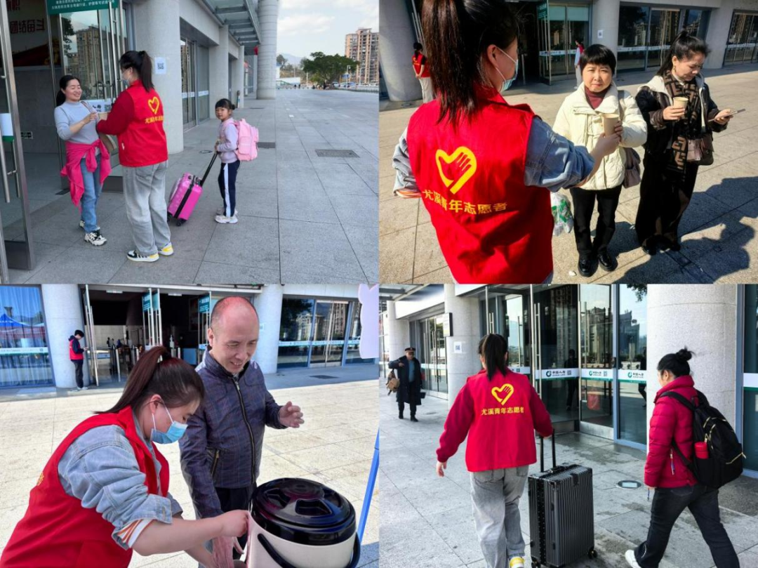 車站內人頭攢動,同學們穿梭在熙攘人群中,為攜帶沉重行李的旅客分擔負荷,在服務臺為旅客遞上溫熱清水,主動幫扶老人、孩童等群體,耐心指引路線、協助檢票、維持現場秩序。每一次伸手、每一杯熱水、每一句叮囑,都凝聚著青年的責任與擔當,有效消解了旅客的旅途疲憊與出行焦慮。