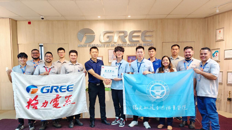 揭牌儀式通過線上線下結(jié)合方式舉行。格力電器巴西基地成品管理部肖云龍部長、培訓主管Romenig Bastos以及當?shù)貑T工代表,與福建船政交通職業(yè)學院教師黃豪杰、陳若宇共同出席巴西現(xiàn)場活動。機械與智能制造學院院長楊開懷、副院長陳貴清、曾思通及師生代表通過線上方式參與儀式。