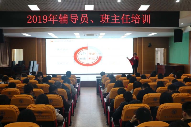 為認(rèn)真貫徹《普通高等學(xué)校輔導(dǎo)員隊(duì)伍建設(shè)規(guī)定》(教育部令第43號(hào))、全國(guó)高校思想政治工作會(huì)議、全國(guó)教育大會(huì)等精神,進(jìn)一步加強(qiáng)一線學(xué)生管理隊(duì)伍整體職業(yè)素養(yǎng)的提升, 1月19日學(xué)院在學(xué)術(shù)報(bào)告廳舉辦2019年首場(chǎng)輔導(dǎo)員、班主任業(yè)務(wù)培訓(xùn),培訓(xùn)以閩江學(xué)院人文學(xué)院黨委副書(shū)記楊曉老師的“輔導(dǎo)員談心談話的語(yǔ)言表達(dá)原則及方法”的主題講座拉序幕,參加培訓(xùn)的有學(xué)院全體輔導(dǎo)員、班主任和思政教師。