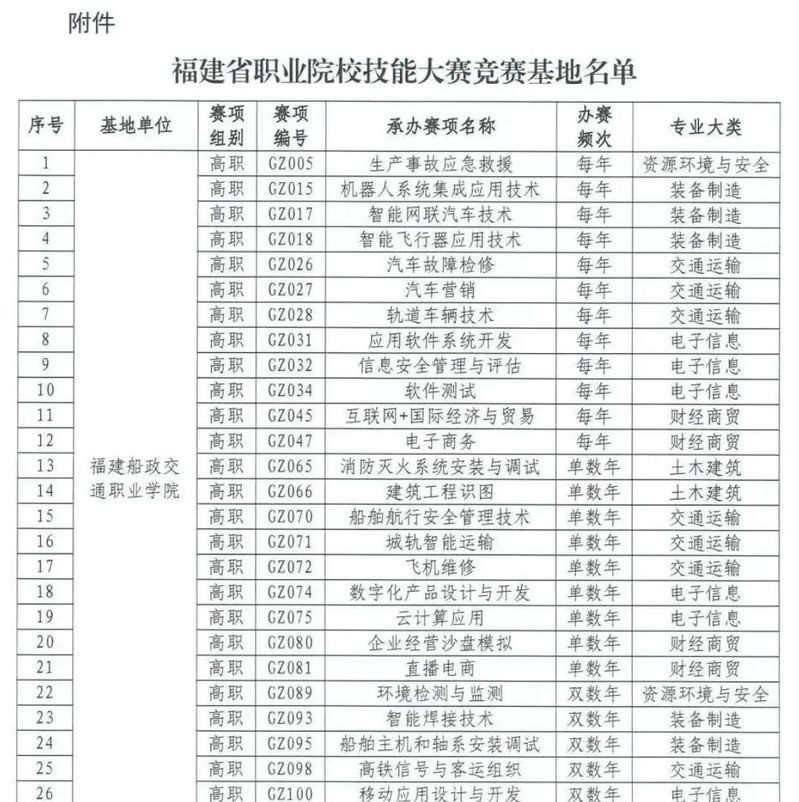 近日,福建省職業(yè)院校技能大賽組委會(huì)公布福建省職業(yè)院校技能大賽競(jìng)賽基地名單,我院“生產(chǎn)事故應(yīng)急救援”等26個(gè)賽項(xiàng)競(jìng)賽基地成功獲批,數(shù)量排全省第一。競(jìng)賽基地是今后3-5年省職業(yè)院校技能大賽賽項(xiàng)固定賽點(diǎn),這是對(duì)我院近年來技能競(jìng)賽成績(jī)及專業(yè)建設(shè)水平的高度肯定,體現(xiàn)了省教育廳和社會(huì)各界對(duì)我院職業(yè)教育成果的認(rèn)可。