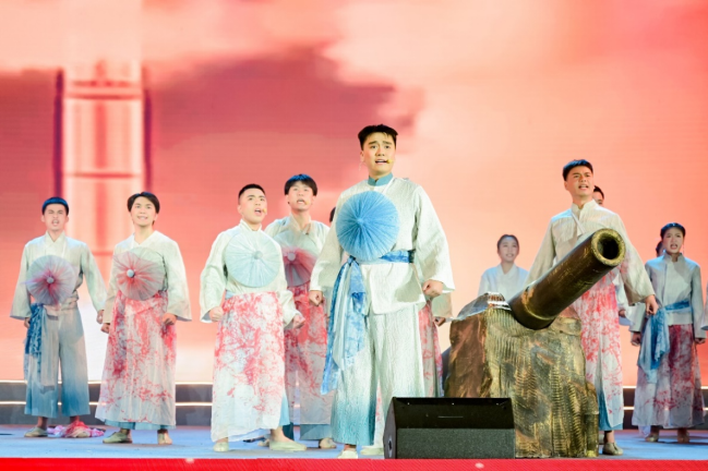 會(huì)上,省直有關(guān)單位和駐閩部隊(duì)領(lǐng)導(dǎo)還為省級航天特色學(xué)校代表授牌,為福建省“愛我國防”主題短視頻、海報(bào)、攝影獲獎(jiǎng)作品頒獎(jiǎng),向我院和全國國防教育示范學(xué)校代表贈(zèng)送了國防題材書籍。我院原創(chuàng)話劇《赤?!穲F(tuán)隊(duì)的展演贏得全場熱烈反響。