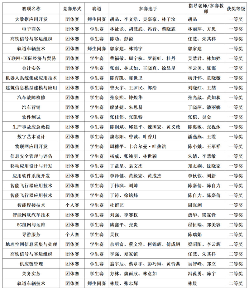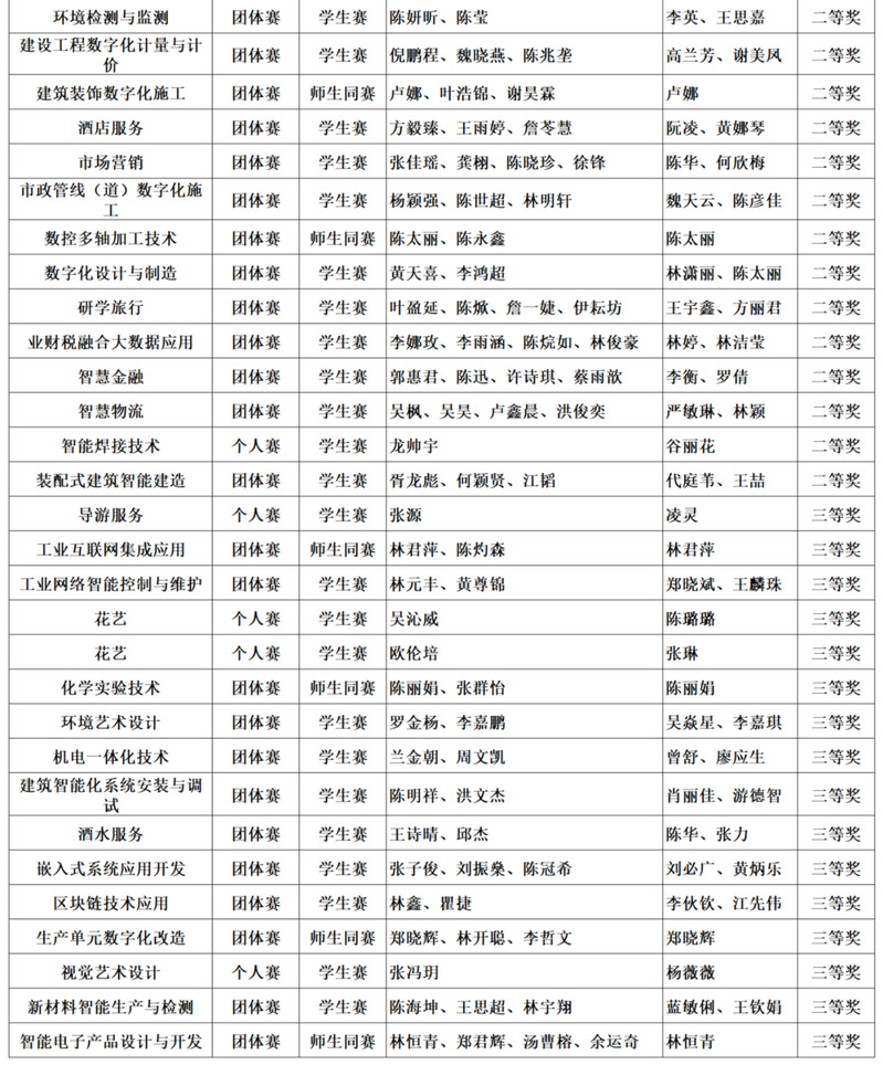 近日,由福建省教育廳、福建省人力資源和社會(huì)保障廳等八廳委共同主辦的2024年度福建省職業(yè)院校技能大賽落下序幕,我院派出178名師生組成了69支隊(duì)伍,共參加了61個(gè)賽項(xiàng)的角逐,共獲一等獎(jiǎng)21項(xiàng)、二等獎(jiǎng)21項(xiàng)、三等獎(jiǎng)16項(xiàng),其中23個(gè)賽項(xiàng)將代表福建省參加國(guó)賽。