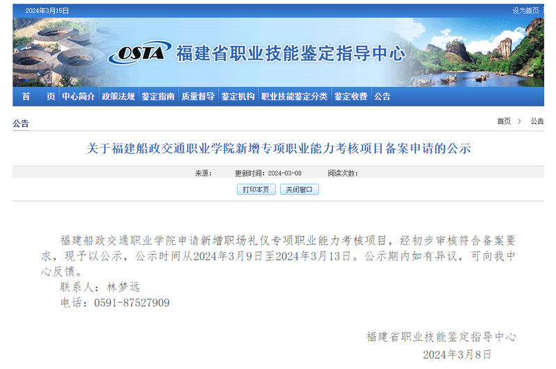 為貫徹落實國家《關(guān)于加強新時代高技能人才隊伍建設(shè)的意見》等相關(guān)文件精神,充分發(fā)揮我院自身的專業(yè)和資源優(yōu)勢,發(fā)掘培訓(xùn)社會人員潛能,提高我院服務(wù)社會的能力,3月8日,經(jīng)福建省職業(yè)技能鑒定指導(dǎo)中心備案通過,我院成功申報職場禮儀專項職業(yè)能力考核項目。