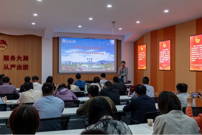 陳文哲教授首先做題為“邁向大學(xué)的必由之路——關(guān)于科學(xué)研究與科技成果獎(jiǎng)勵(lì)”的報(bào)告,從青年教師成長、產(chǎn)學(xué)研合作、科技成果積累與報(bào)獎(jiǎng)、科研與教學(xué)之間的關(guān)系等方面做了精彩分享,并勉勵(lì)青年教師勇于投身產(chǎn)學(xué)研實(shí)踐,組建校企科技攻關(guān)團(tuán)隊(duì),在科研實(shí)踐中不斷成長。