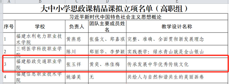 近日,省教育廳發(fā)布關(guān)于大中小學(xué)思政課精品課擬立項名單,我院4項教學(xué)設(shè)計入選。