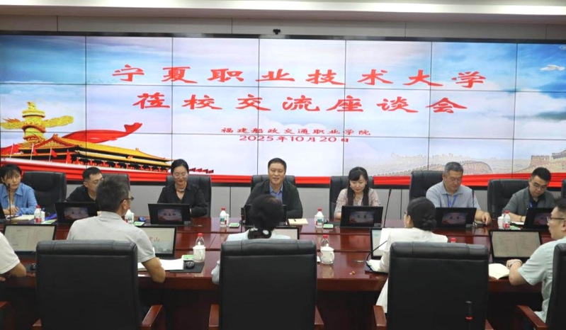 為深入貫徹落實(shí)閩寧教育對口協(xié)作機(jī)制,不斷拓展兩校合作交流內(nèi)涵,10月20日,寧夏職業(yè)技術(shù)大學(xué)黨委委員、紀(jì)委書記馬建榮率掛職團(tuán)隊(duì)蒞校開展調(diào)研交流。學(xué)院黨委副書記、院長陳群,紀(jì)委書記謝建山,副院長陳艷紅出席交流活動(dòng)。寧夏職業(yè)技術(shù)大學(xué)教務(wù)處、組織人事部負(fù)責(zé)同志及11名掛職干部,學(xué)院雙高辦、人事處、教務(wù)處、科技處、數(shù)據(jù)中心、機(jī)械與智能制造學(xué)院、信息與智慧交通學(xué)院、經(jīng)濟(jì)與管理學(xué)院、馬克思主義學(xué)院、教師工作部負(fù)責(zé)同志參加了交流活動(dòng)。