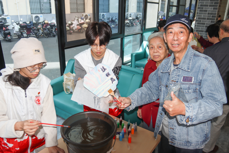 活動(dòng)當(dāng)日,校園內(nèi)處處洋溢著溫馨氛圍,“歡樂(lè)重陽(yáng)”趣味健身游園會(huì)將傳統(tǒng)民俗與趣味體驗(yàn)巧妙融合,讓老同志們?cè)诨?dòng)中盡享歡樂(lè)。在制作漆扇區(qū),老師們手持素扇放入漆桶輕輕轉(zhuǎn)動(dòng),暈染出靈動(dòng)紋路,讓樸素的扇面瞬間綻放出獨(dú)特光彩;干花香囊制作區(qū)里,老師們挑選心儀的干花與香料,親手縫制出一個(gè)個(gè)精致的香囊;投壺與捶丸項(xiàng)目前更是熱鬧非凡,老同志們或凝神瞄準(zhǔn)、穩(wěn)步投箭,或手持球桿、精準(zhǔn)擊球,現(xiàn)場(chǎng)時(shí)而響起歡呼喝彩,盡顯活力與風(fēng)采。隨后,學(xué)院組織離退休教師集體觀看電影,從影片中傳遞關(guān)懷。