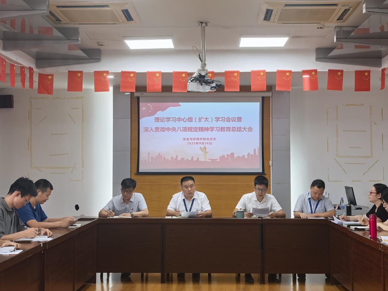 9月26日上午,安全與環(huán)境學院在會議室909召開理論學習中心組(擴大)會議暨深入貫徹中央八項規(guī)定精神學習教育總結大會。會議由黨總支組織委員、副院長范自盛主持,學院中心組成員、教師代表及學生代表參加。