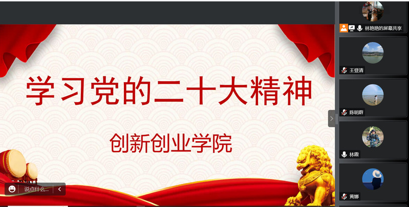 11月15日,創(chuàng)新創(chuàng)業(yè)學(xué)院召開黨的二十大精神專題線上宣講會(huì)。林霞院長(zhǎng)作宣講報(bào)告,報(bào)告會(huì)通過騰訊會(huì)議平臺(tái)進(jìn)行,全體教職員工和支部黨員參加。