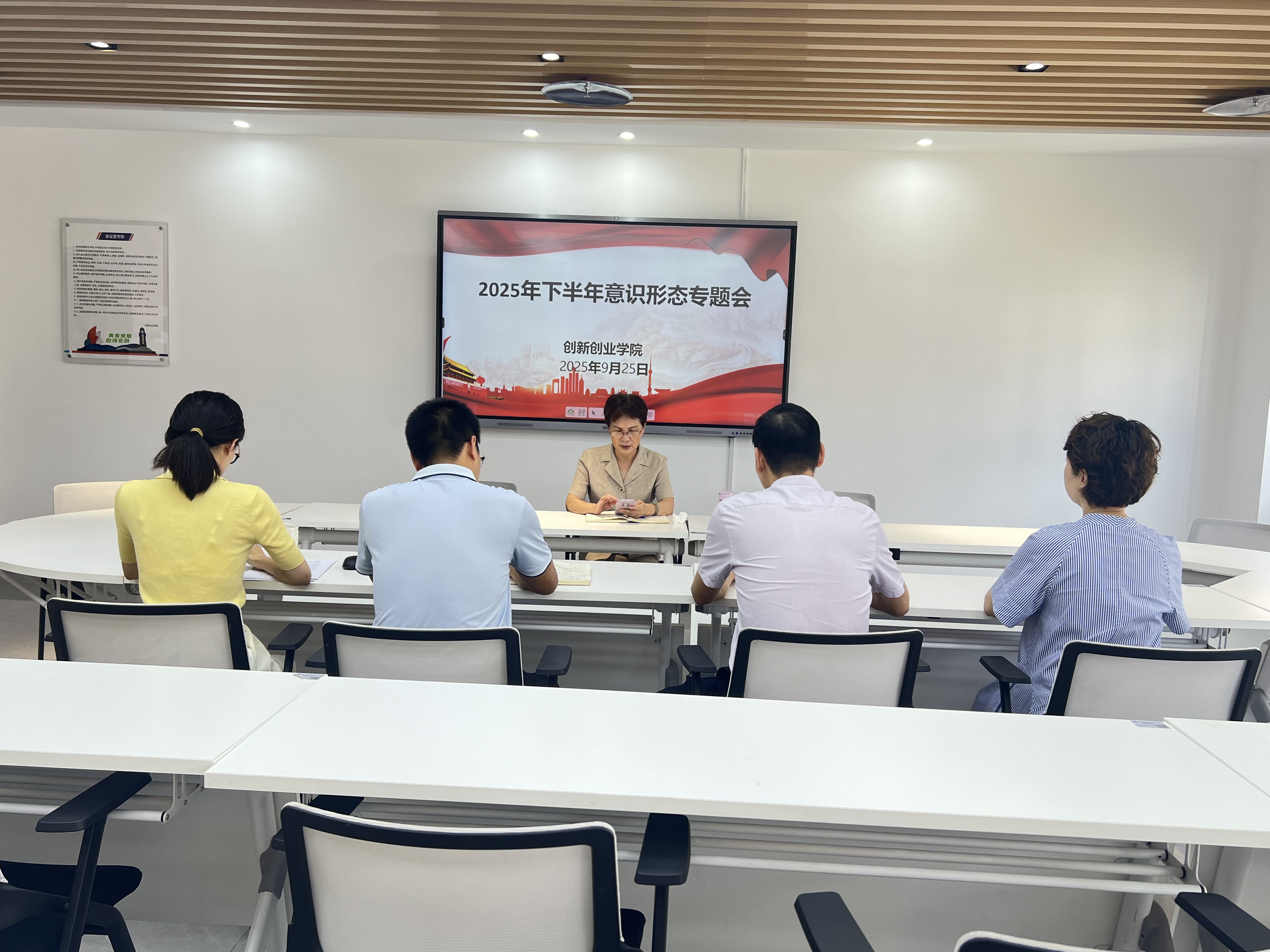 創(chuàng)新創(chuàng)業(yè)學(xué)院于2025年9月22日在藝新樓815召開(kāi)了下半年意識(shí)形態(tài)專(zhuān)題會(huì),會(huì)議由學(xué)院院長(zhǎng)林霞主持,全體教職工參加。