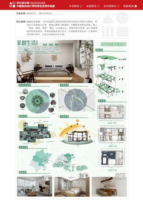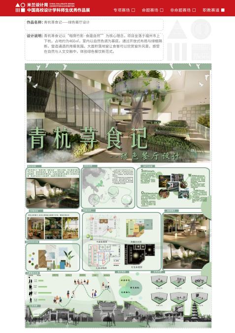近日,由中國(guó)教育國(guó)際交流協(xié)會(huì)、中國(guó)高等教育學(xué)會(huì)聯(lián)合主辦的第九屆“米蘭設(shè)計(jì)周中國(guó)高校設(shè)計(jì)學(xué)科師生優(yōu)秀作品展”主題競(jìng)賽評(píng)審結(jié)果正式公布。學(xué)院建筑裝飾工程技術(shù)專業(yè)學(xué)生踴躍參賽并喜獲佳績(jī),共獲職教賽道非命題類福建賽區(qū)二等獎(jiǎng)1項(xiàng)、三等獎(jiǎng)1項(xiàng)。其中,作品《青杭蕁食記--綠色餐廳設(shè)計(jì)》榮獲二等獎(jiǎng),《家創(chuàng)生活——居住空間設(shè)計(jì)》榮獲三等獎(jiǎng)。