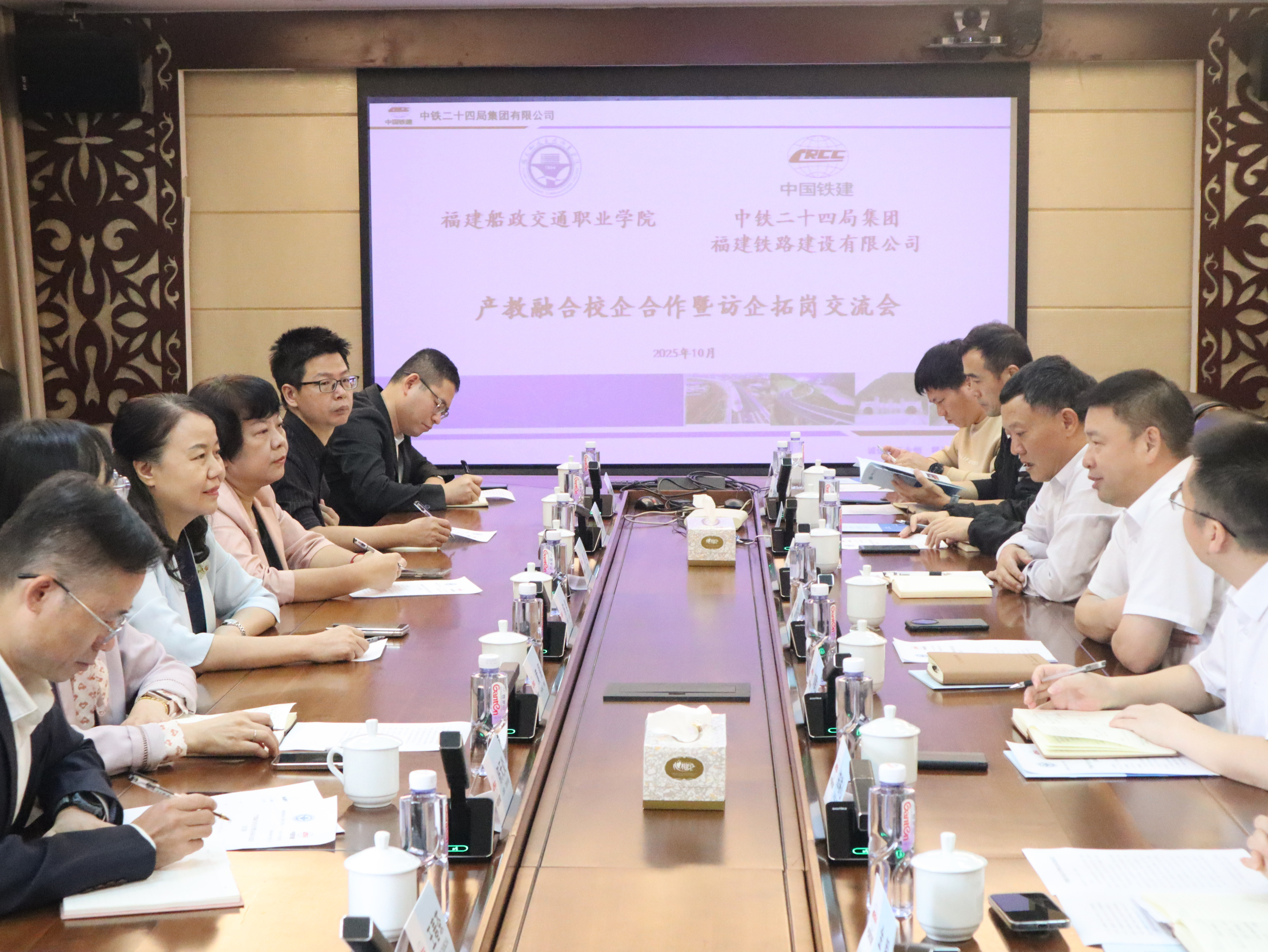 中鐵二十四局福建公司溫裕洪書記對陳群校長一行的到來表示熱烈歡迎,對學院特色發(fā)展、質量辦學,培養(yǎng)德技并修、注重實踐的人才取得的成效予以高度評價。校企雙方就深化產教融合、科教融匯,加強專業(yè)建設、做優(yōu)人才培養(yǎng)、推進學生就業(yè),開展人員培訓、黨建共建等深入交流。