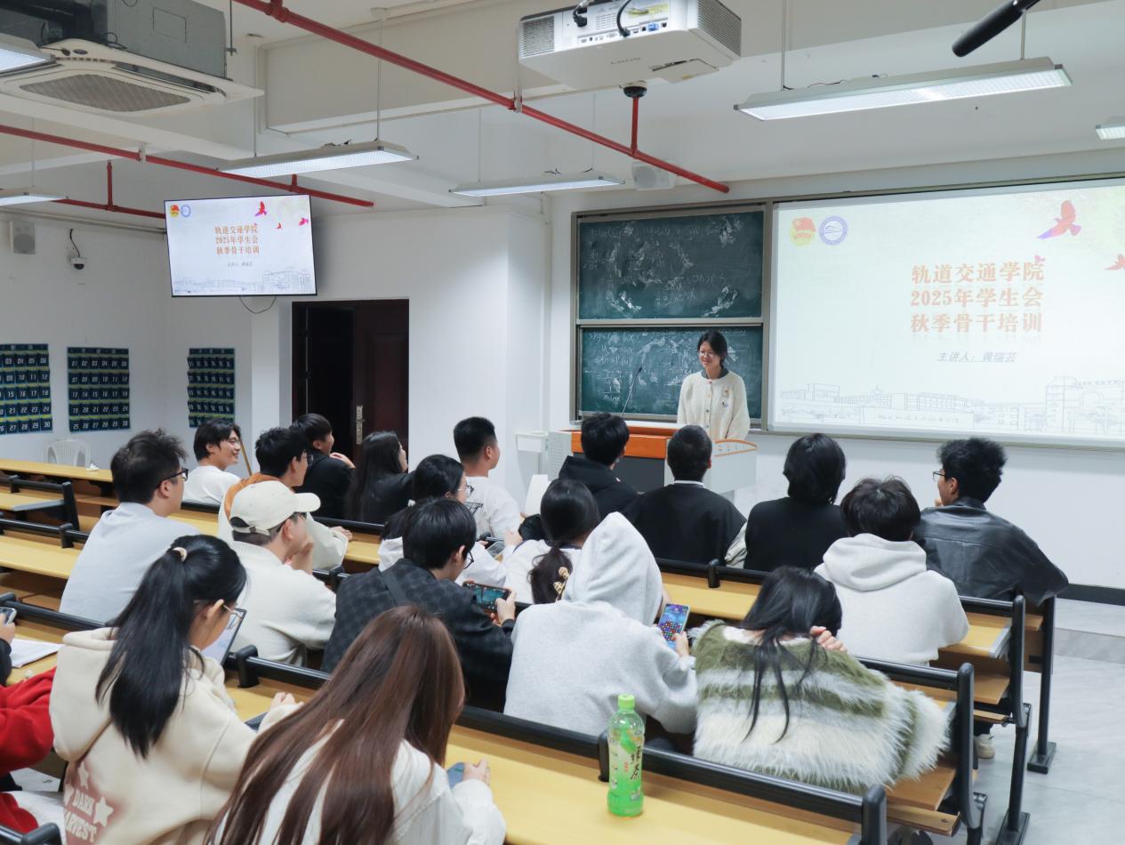 為進(jìn)一步加強(qiáng)軌道交通學(xué)院學(xué)生干部隊(duì)伍建設(shè),提升學(xué)生骨干的綜合素質(zhì)與工作能力,2025年11月10日,軌道交通學(xué)院2025年學(xué)生會(huì)秋季骨干培訓(xùn)在福船園藝新樓707成功舉行。本次培訓(xùn)面向2024級(jí)學(xué)口、自律會(huì)以及紅十字會(huì)兩委干部,旨在培養(yǎng)一批政治堅(jiān)定、作風(fēng)優(yōu)良、能力突出的學(xué)生干部。