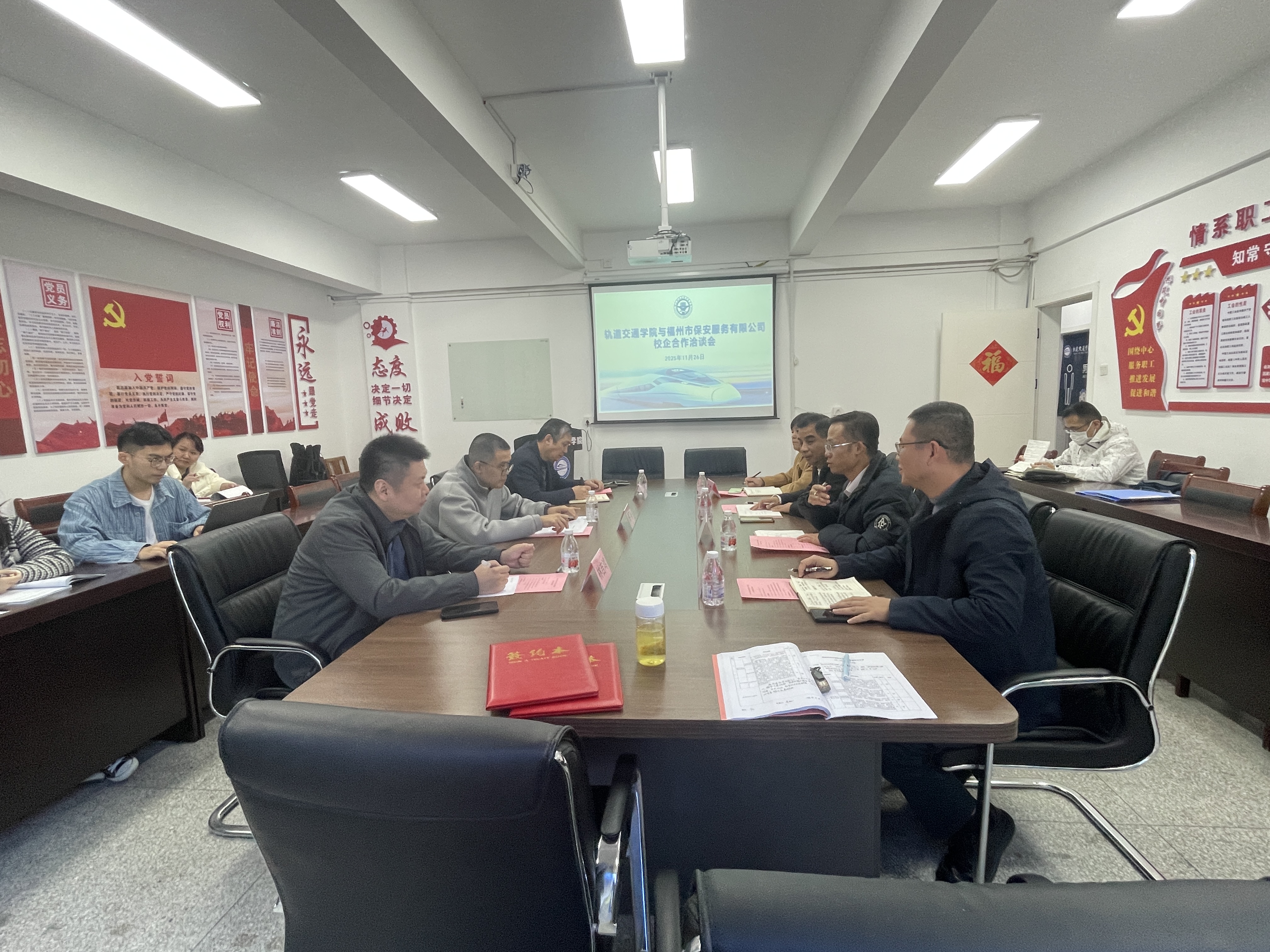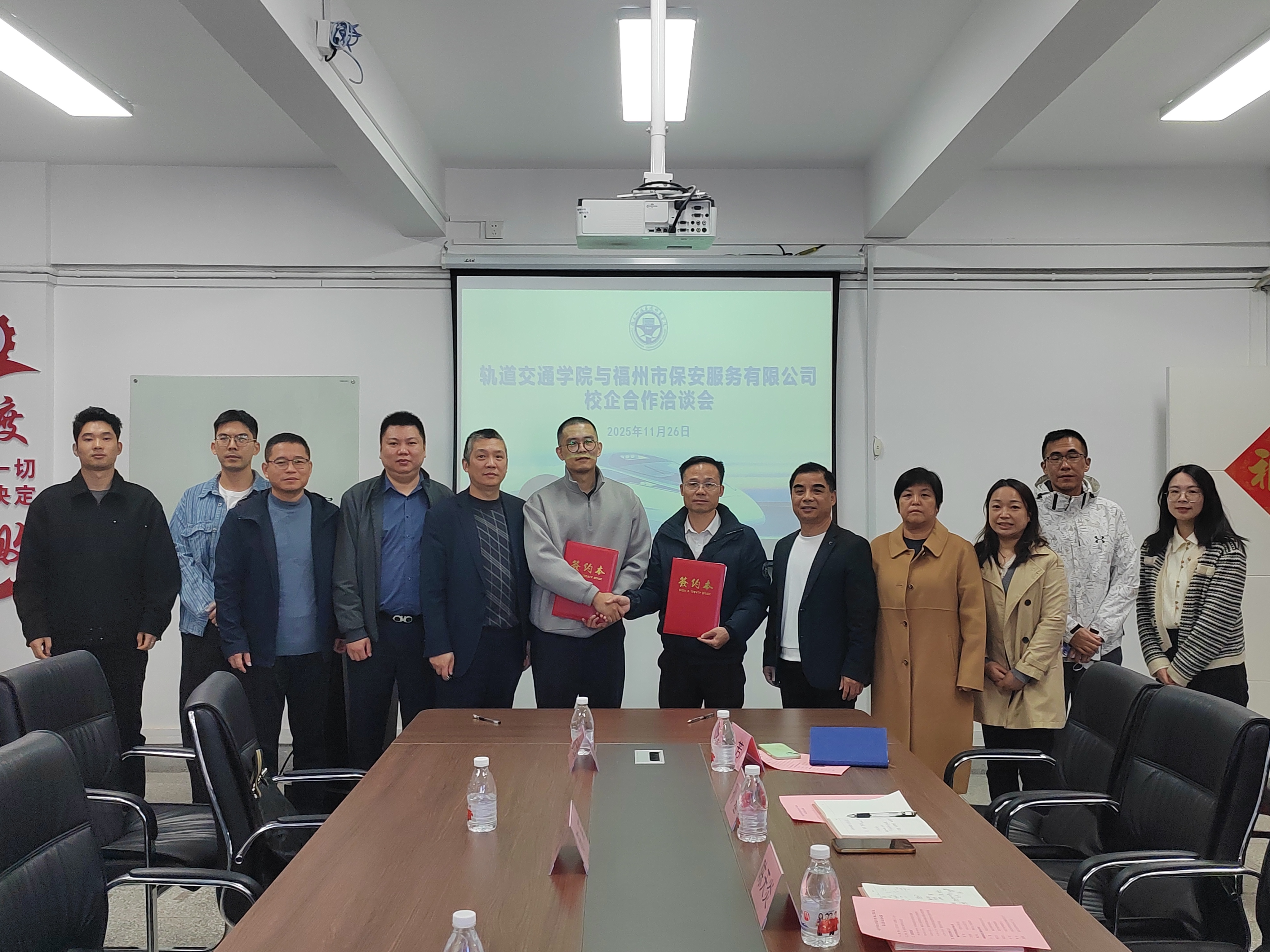 簽約儀式現(xiàn)場,福州市保安服務(wù)有限公司負責(zé)人陳笛、綜合辦公室主任羅宏青、培訓(xùn)分公司副經(jīng)理林吉鴻等企業(yè)代表,與軌道交通學(xué)院院長陳天炎、黨總支書記孫基、副院長陳宏意、季芳以及運營教研室教師代表共同出席了本次活動,見證了這一重要時刻。
